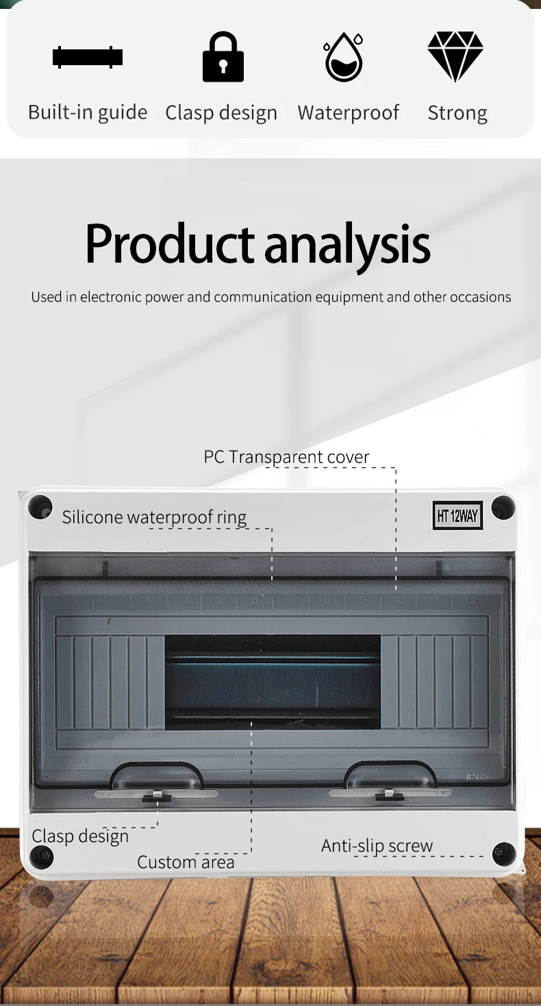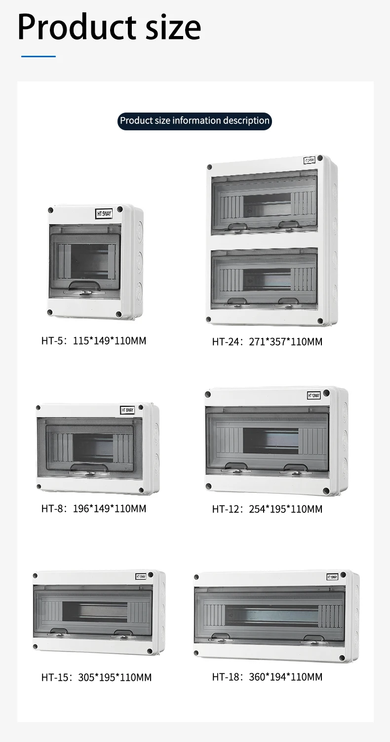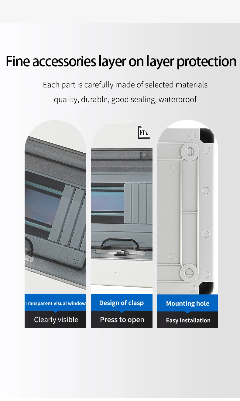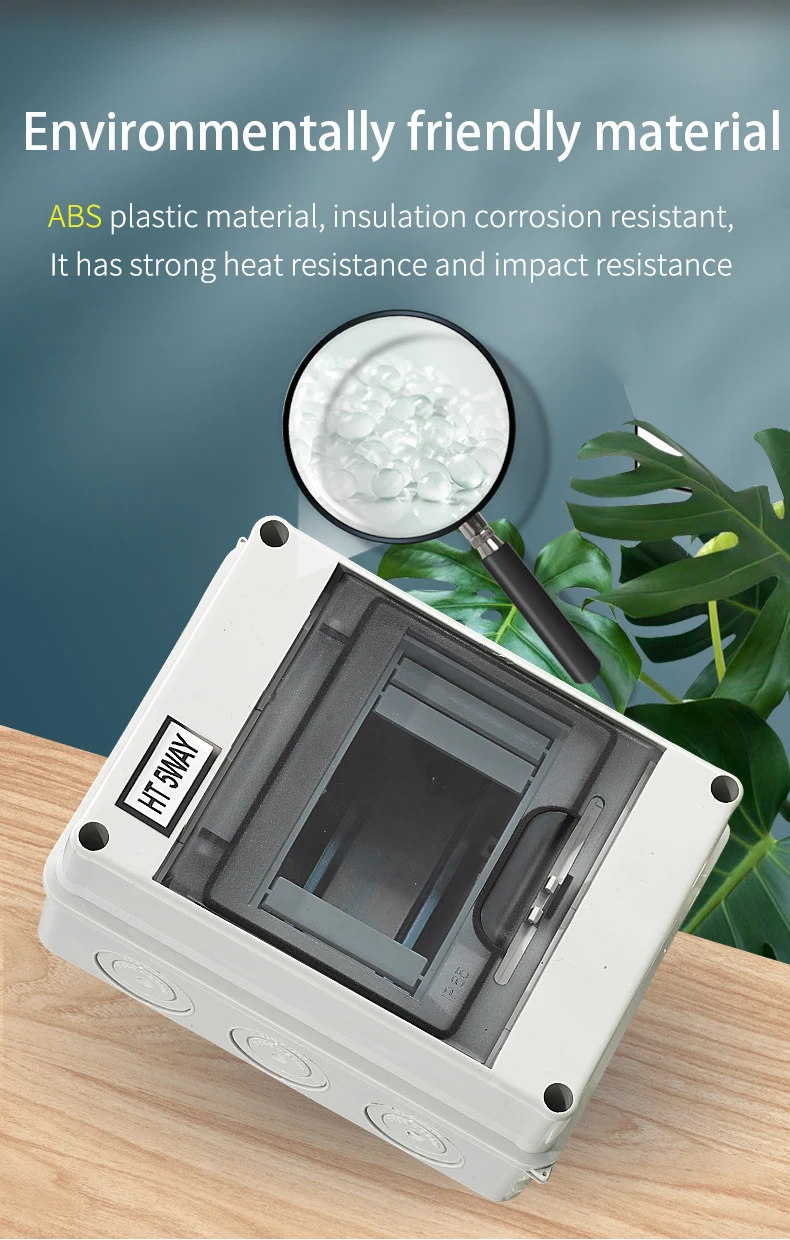 La boîte de distribution électrique en plastique ABS de la série de naissance est un organisateur extérieur étanche. Elle est conçue pour résister aux conditions difficiles grâce à son indice de protection IP65. Disponible en différents modèles comprenant 5, 8, 12, 15, 18 ou 24 voies, cette boîte de distribution vous permettra de sécuriser vos connexions électriques, que ce soit dans une usine, un bâtiment, une résidence ou un centre commercial. Le panneau est fabriqué en ABS d’ingénierie à haute résistance et ne change jamais de couleur. Le matériau transparent utilisé est le PC, offrant ainsi une résistance à l’eau, la poussière, la corrosion et une durabilité inégalée. L’ouverture et la fermeture du couvercle se font simplement en appuyant dessus, et il y a une structure charnière avec une position autobloquante lorsqu’elle est ouverte. La conception du câblage de la boîte de distribution facilite son installation grâce à une plaque de support de rail de guidage qui peut être élevée au point d’activité le plus élevé, permettant ainsi d’installer les fils sans contraintes d’espace étroit. Le commutateur de la boîte de distribution est fourni avec des rainures de fil et des ouvertures de tuyau de ligne, permettant une utilisation facile de divers fils de tuyau et rainures de fil.