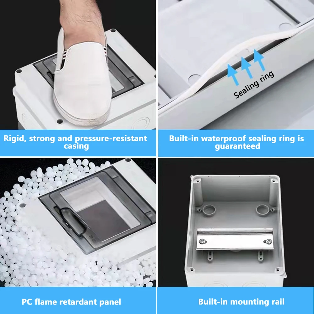 La boîte de distribution électrique étanche extérieure est conçue pour offrir une étanchéité exceptionnelle avec sa qualité IP65. Sa coque dure et résistante à la compression garantit une excellente protection pour les circuits électriques. Grâce à sa bague d’étanchéité intégrée, cette boîte assure une étanchéité totale. Le panneau ignifuge en PC offre une sécurité supplémentaire. De plus, l’installation est facilitée grâce au rail de guidage intégré. Le câblage est également sans souci avec des trous de câblage des deux côtés de la boîte.