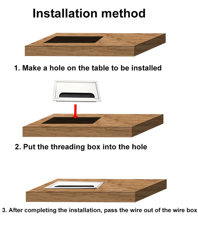 En conclusion, la boîte de filetage de table en alliage d’aluminium avec brosse est un accessoire fiable et fonctionnel pour gérer les fils et les câbles. Son installation facile, sa durabilité et son design élégant en font un excellent choix pour améliorer l’organisation de vos meubles.