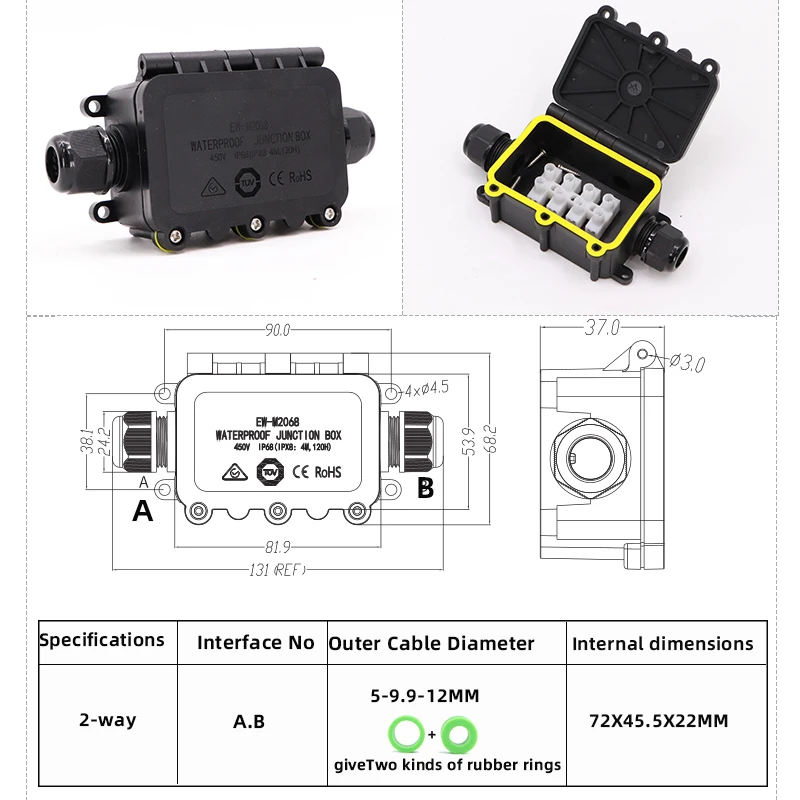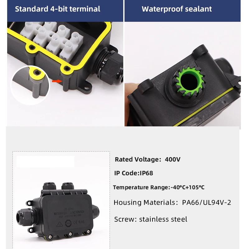 - Boîte de jonction étanche IP68.2/3/4/5/6 vitres
