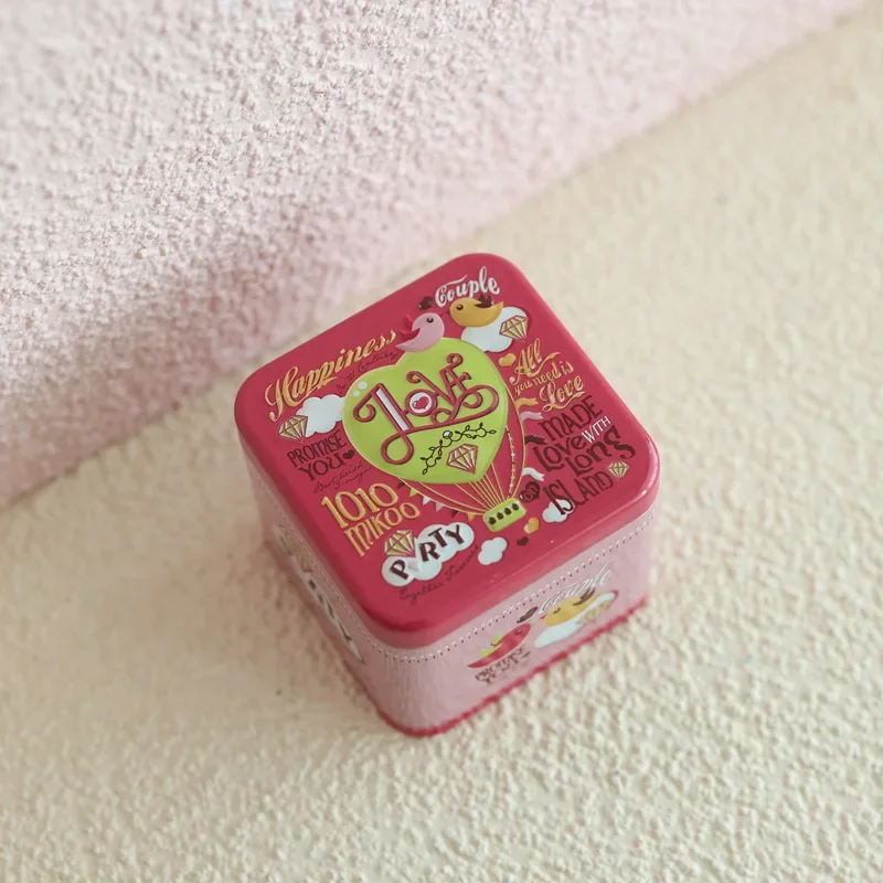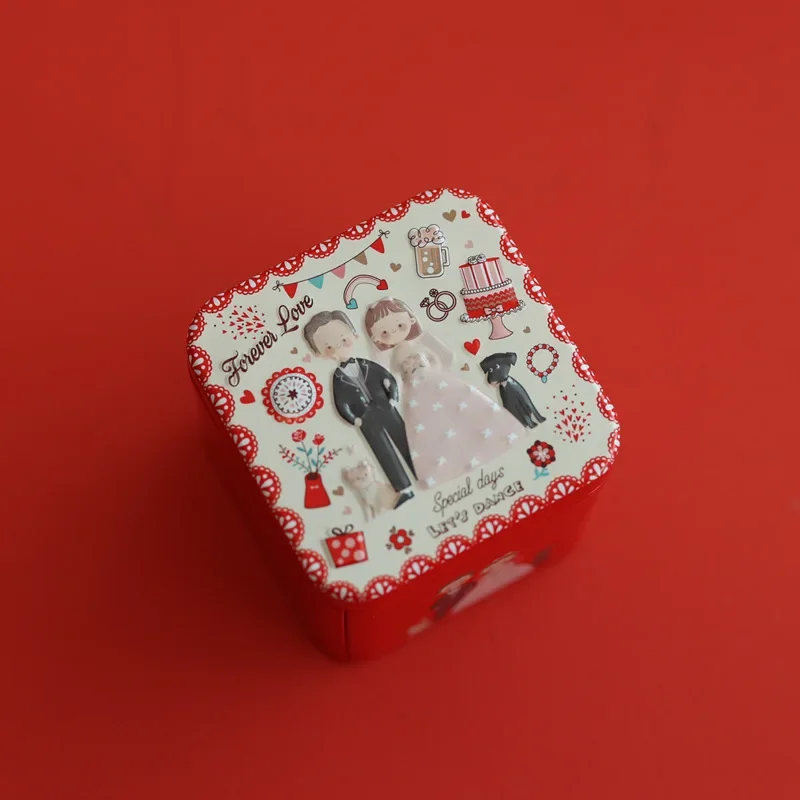 Petite boîte carrée de mariée rouge, boîte à bonbons heureuse, cadeau de bonbons en fer créatif, instituts tridimensionnels