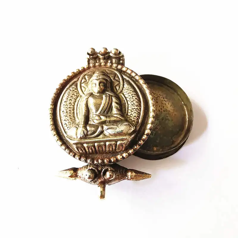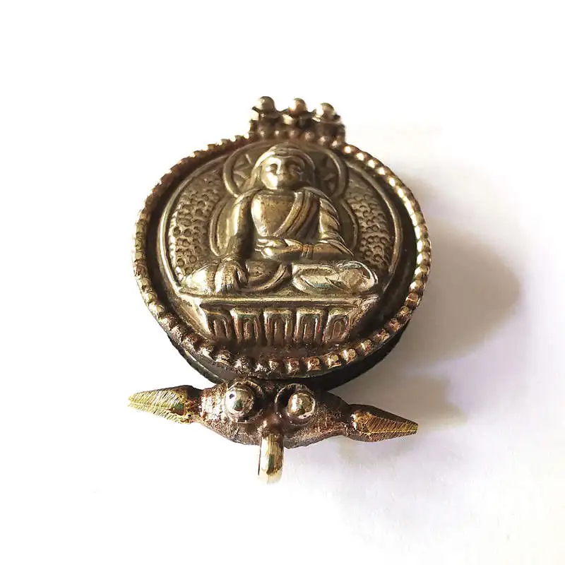 Boîte de prière traditionnelle tibétaine artisanale-Amulette GAU