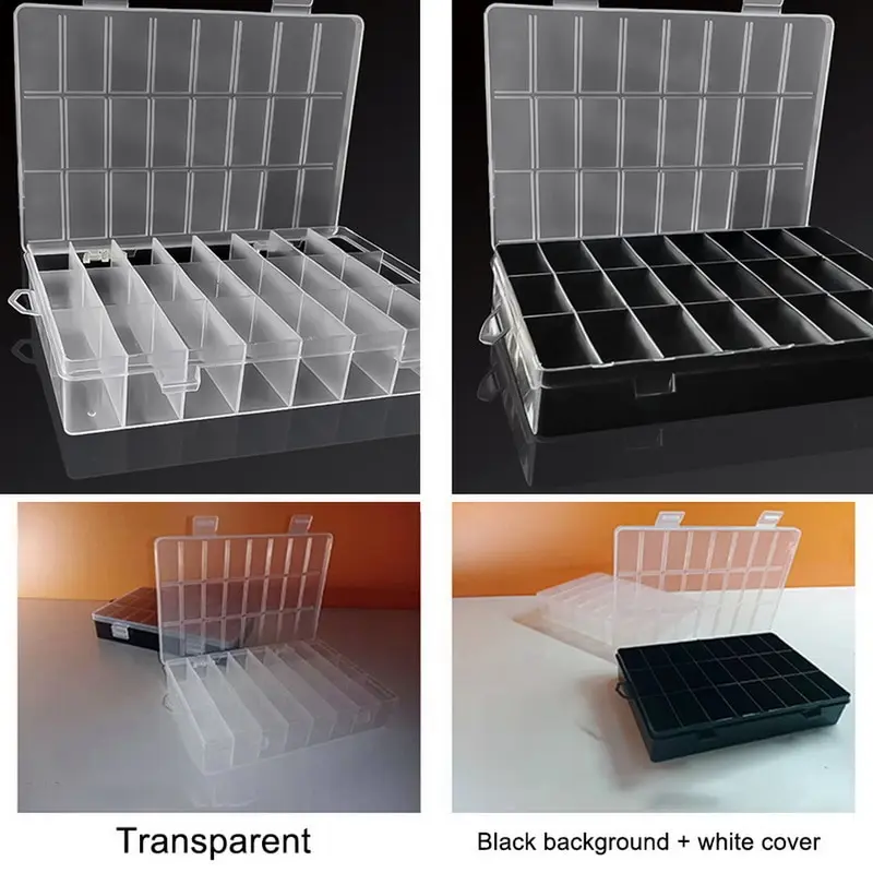 La boîte de rangement en plastique à 24 compartiments est un accessoire pratique pour organiser et stocker de petits objets tels que bijoux, vis, perles et boucles d’oreilles. Fabriquée en plastique PP de haute qualité, cette boîte est robuste, non toxique et sans odeur.