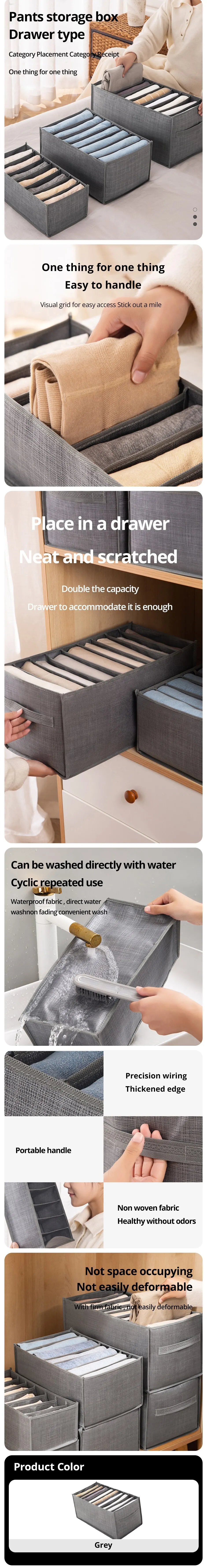 - Utilisation polyvalente : Cette boîte de rangement peut être utilisée à diverses fins, telles que le stockage de pantalons, de vêtements et de sous-vêtements, ce qui en fait un ajout polyvalent à votre garde-robe.