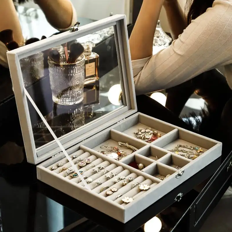 • High transparency glass allows you to easily find the jewelry you need through the lid.