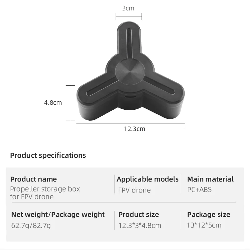 | Taille du produit | 12.3*3*4.8cm (boîte de rangement), 11.8*11.8*1.05cm, lame de 6.7cm (rayon) |