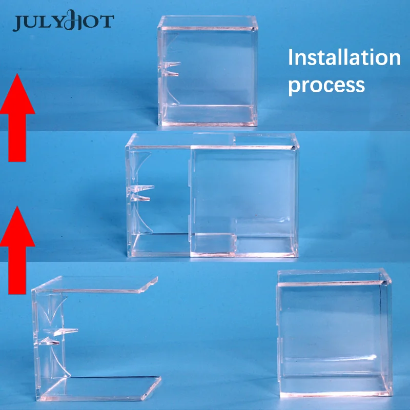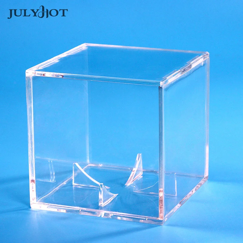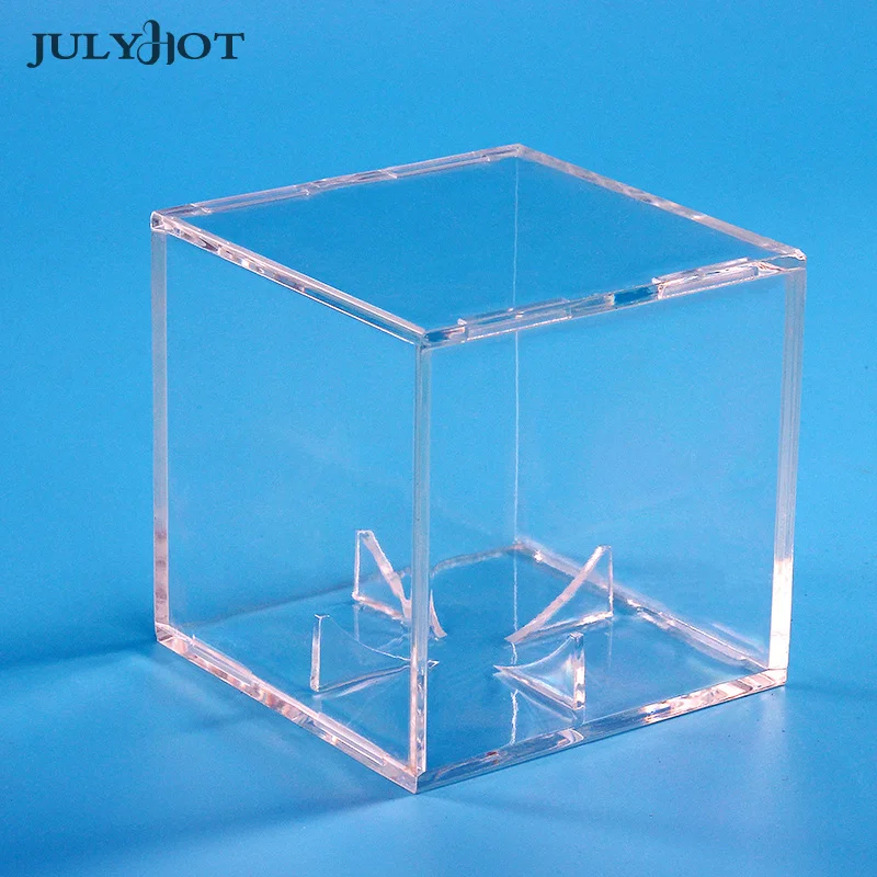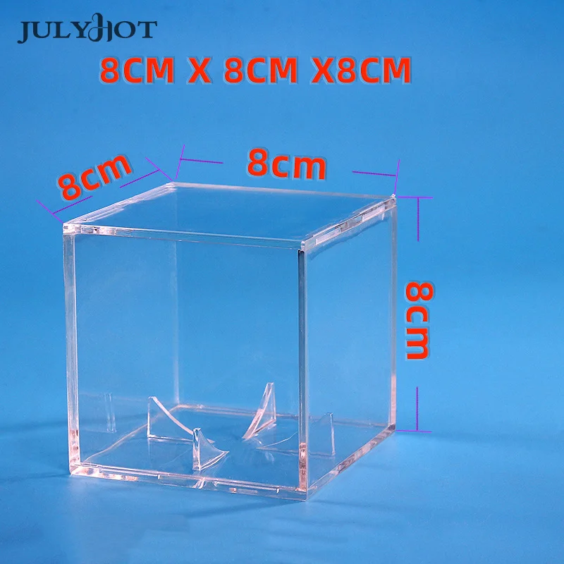 Cette boîte mesure seulement 8x8x8 cm, ce qui la rend compacte et légère. Elle n’occupe pas beaucoup d’espace sur votre table. De plus, le matériau acrylique offre une protection fiable contre les rayures et la poussière.