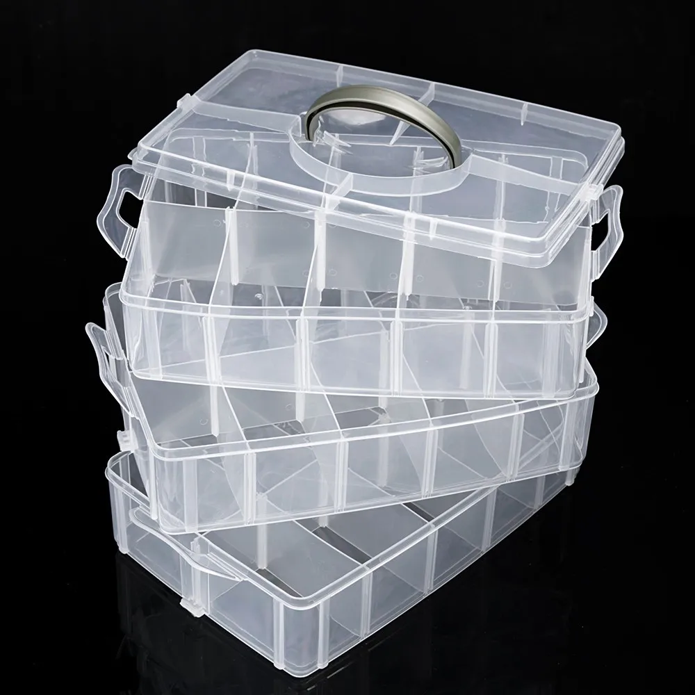 L’étui organisateur en plastique est un conteneur de bijoux pratique qui offre 30 compartiments répartis sur 3 couches. Chaque couche peut être simplement divisée en 10 cellules pour une organisation personnalisée de vos bijoux et perles. La boîte est transparente, ce qui vous permet de voir rapidement ce qui se trouve à l’intérieur. Elle est également équipée d’une poignée de transport sur le dessus pour une portabilité pratique. Fabriquée en plastique de haute qualité, cette boîte de rangement est stable et durable.