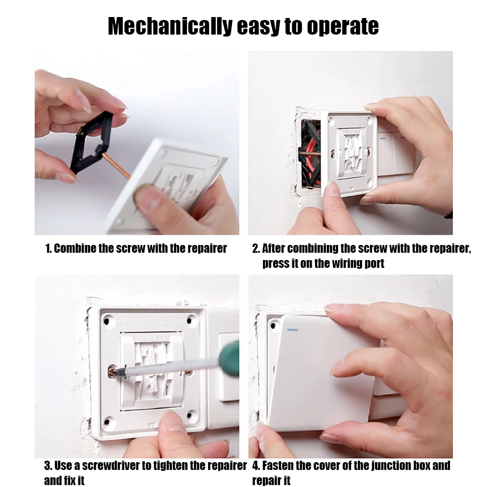 L’outil de réparation de boîte de commutateur de montage mural est spécialement conçu pour réparer la boîte de jonction de la prise de commutateur en quelques minutes. Il est facile à utiliser et ne nécessite qu’un tournevis pour l’installation. Le matériau isolant utilisé dans la finition de surface garantit une isolation parfaite. Ce produit convient à toutes les boîtes murales électriques de 86x86mm.