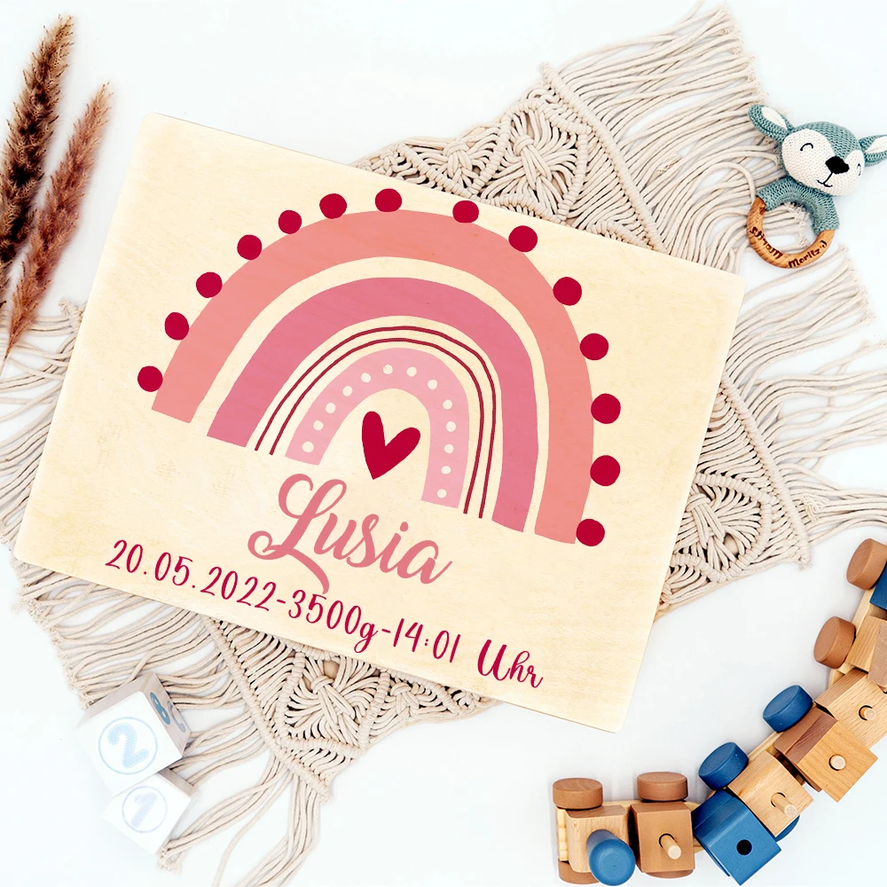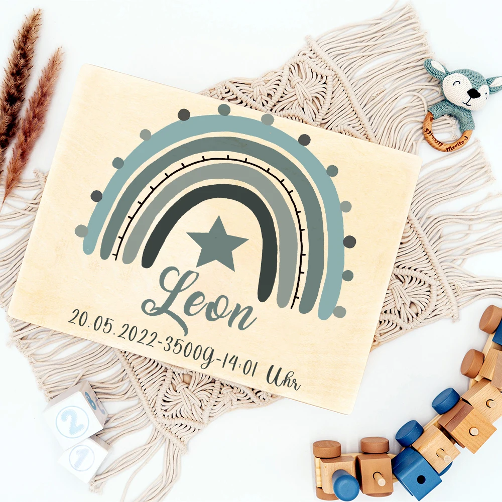 La boîte à mémoire en bois personnalisée pour bébé est un cadeau de naissance idéal. Avec ses impressions mignonnes d’animaux de dessin animé et d’arcs-en-ciel, elle convient parfaitement pour les garçons et les filles. Cette petite boîte offre amplement d’espace pour ranger différents souvenirs de bébé tels que des sacs, des peignes à cheveux, des sucettes, etc. Son design durable en fait un cadeau spécial qui sera chéri pour toujours.