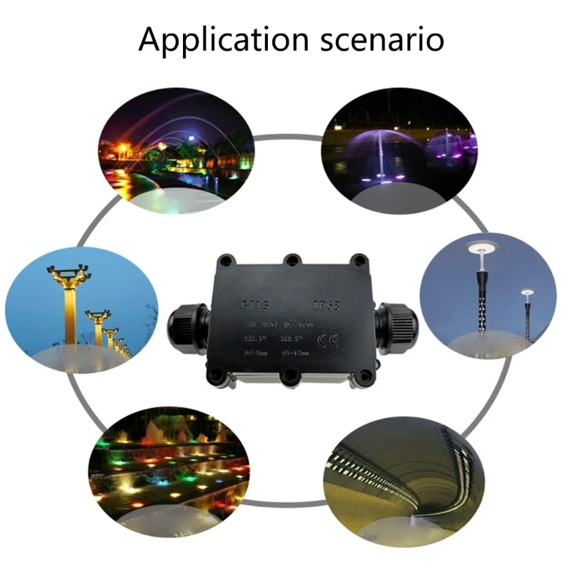 La boîte de jonction étanche G713 IP68 est conçue pour protéger les câbles extérieurs, les lignes de câbles souterraines et les joints de manchon de protection. Fabriquée à partir de coques PC en plastique de haute qualité, elle offre une grande résistance à la corrosion, aux températures élevées et aux UV. Elle est donc adaptée aux installations extérieures, telles que les réverbères, les lampes de jardin ou les projecteurs extérieurs. De plus, elle convient à divers panneaux d’affichage et éclairages LED.