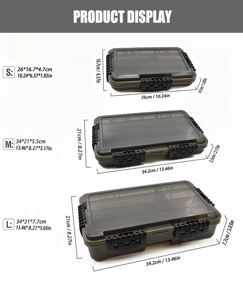 La boîte de matériel de pêche est disponible en 3 tailles différentes. Veuillez vérifier attentivement les images pour connaître les dimensions exactes de chaque taille.