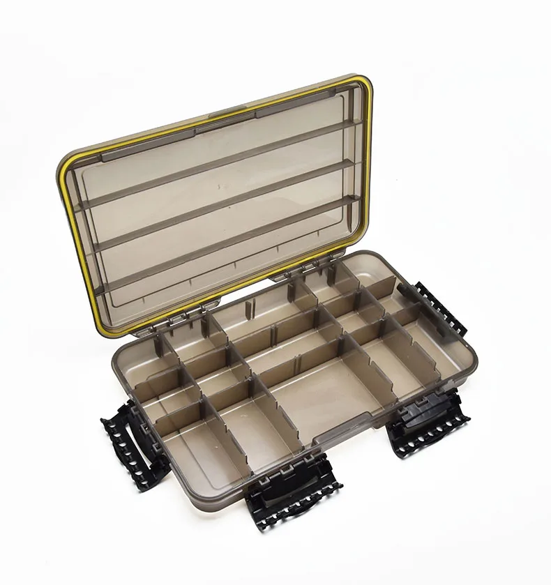 - Boîte étanche pour le rangement et le rangement des accessoires de pêche.