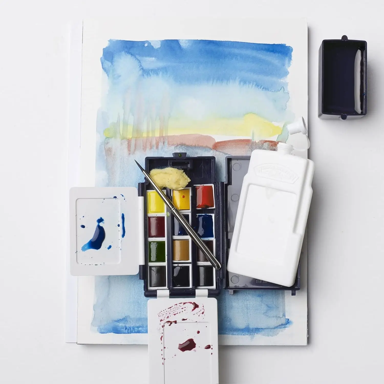 La boîte métallique légère pour document d’eau professionnel de Winsor & Newton est une solution pratique pour les artistes qui souhaitent peindre en déplacement. Cette boîte comprend 24 ou 12 demi-casseroles de couleurs vives, idéales pour créer une variété de nuances et d’effets. La brosse d’interconnexion inclus dans cet ensemble permet un mélange facile des couleurs. Cette boîte de voyage compacte est parfaite pour les artistes qui aiment peindre en extérieur ou lors de déplacements.