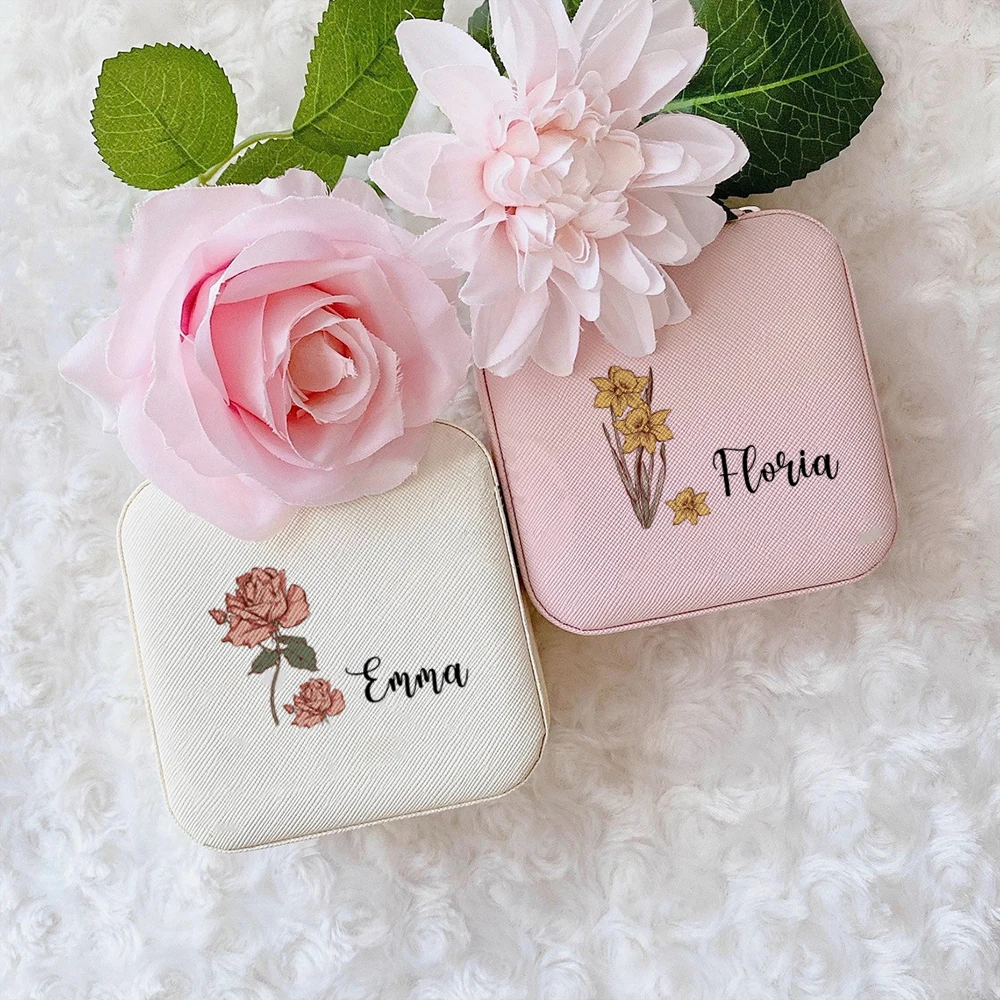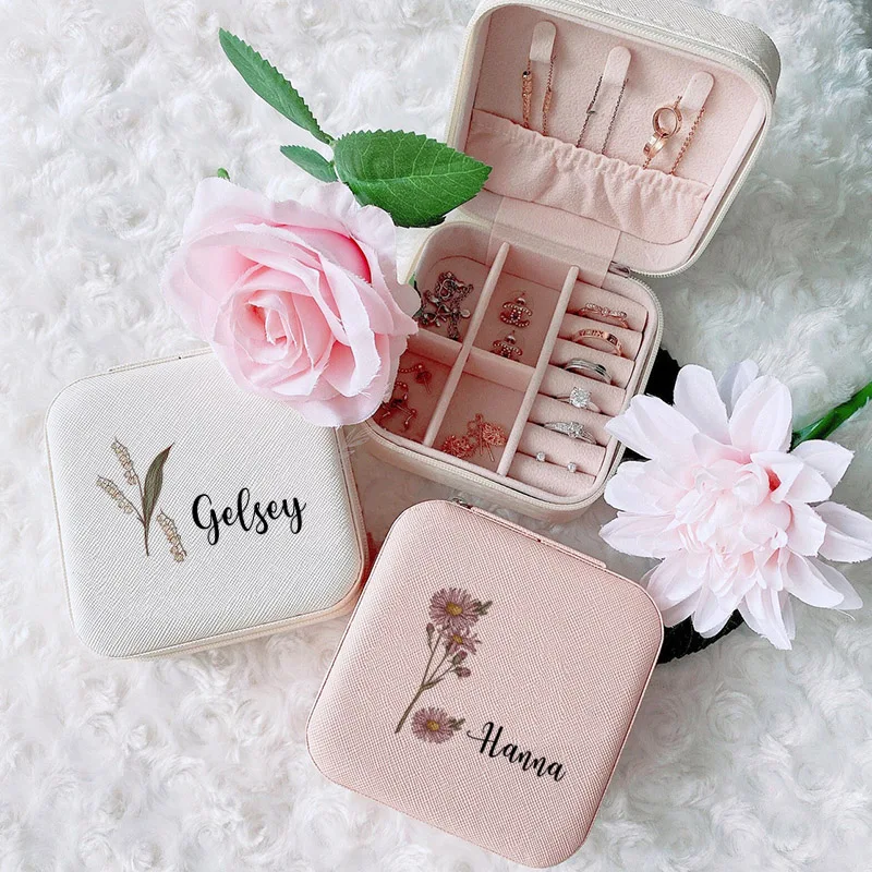 La boîte à bijoux personnalisée avec fleurs, étui de voyage est un cadeau parfait pour toute occasion spéciale. Que ce soit pour une demoiselle d’honneur, une mariée, une mère ou tout simplement pour vous faire plaisir, cette boîte à bijoux est un choix idéal.