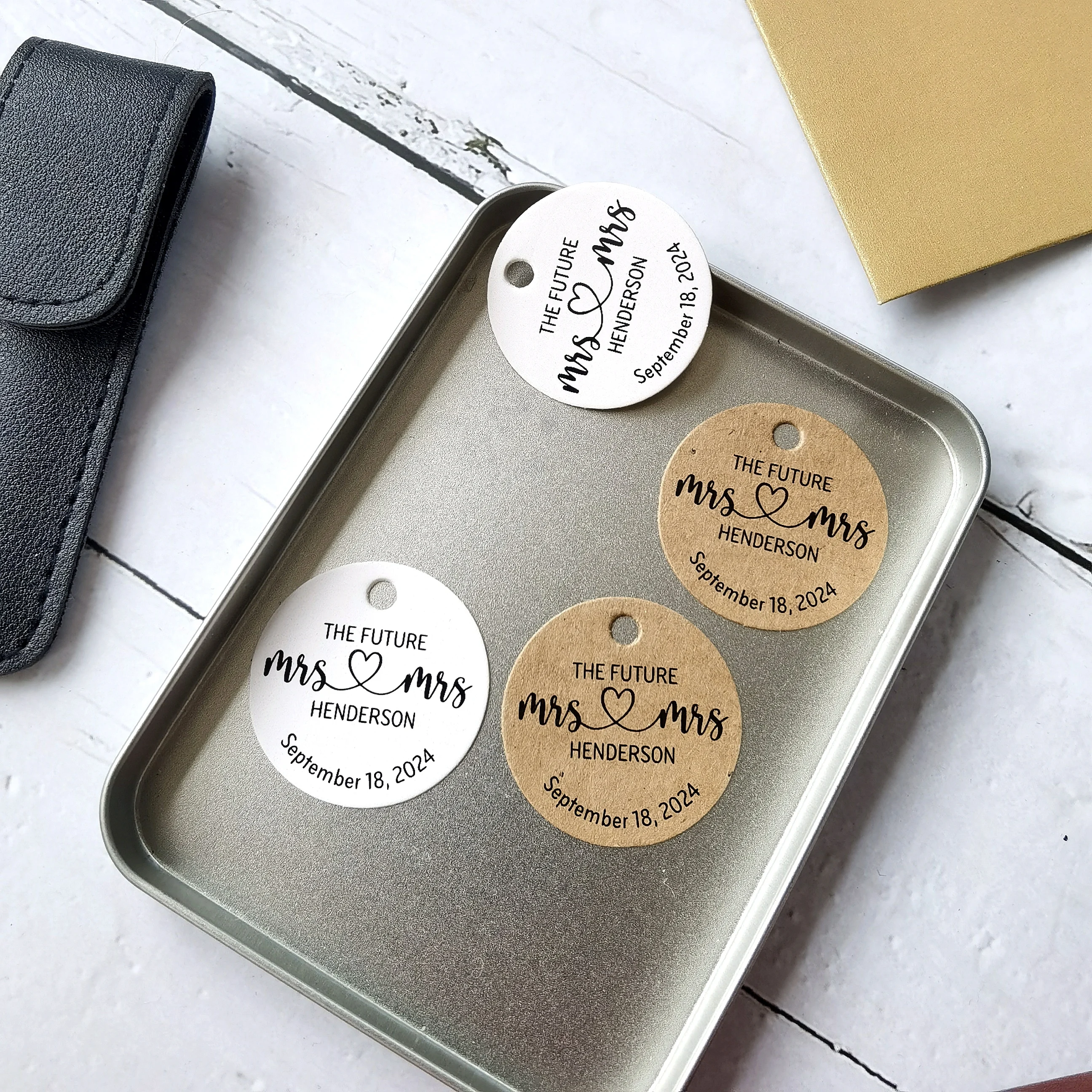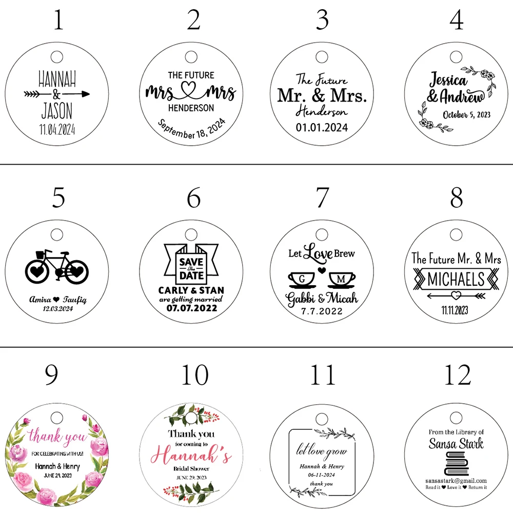 La boîte attro de mariage personnalisée ronde comprend 100 pièces.
