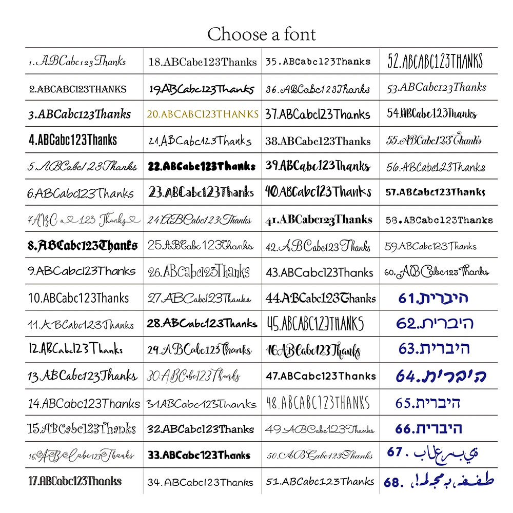 Contactez-nous via la lettre du site Web express et indiquez-nous vos besoins en matière de texte personnalisé et de police.