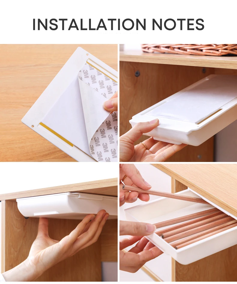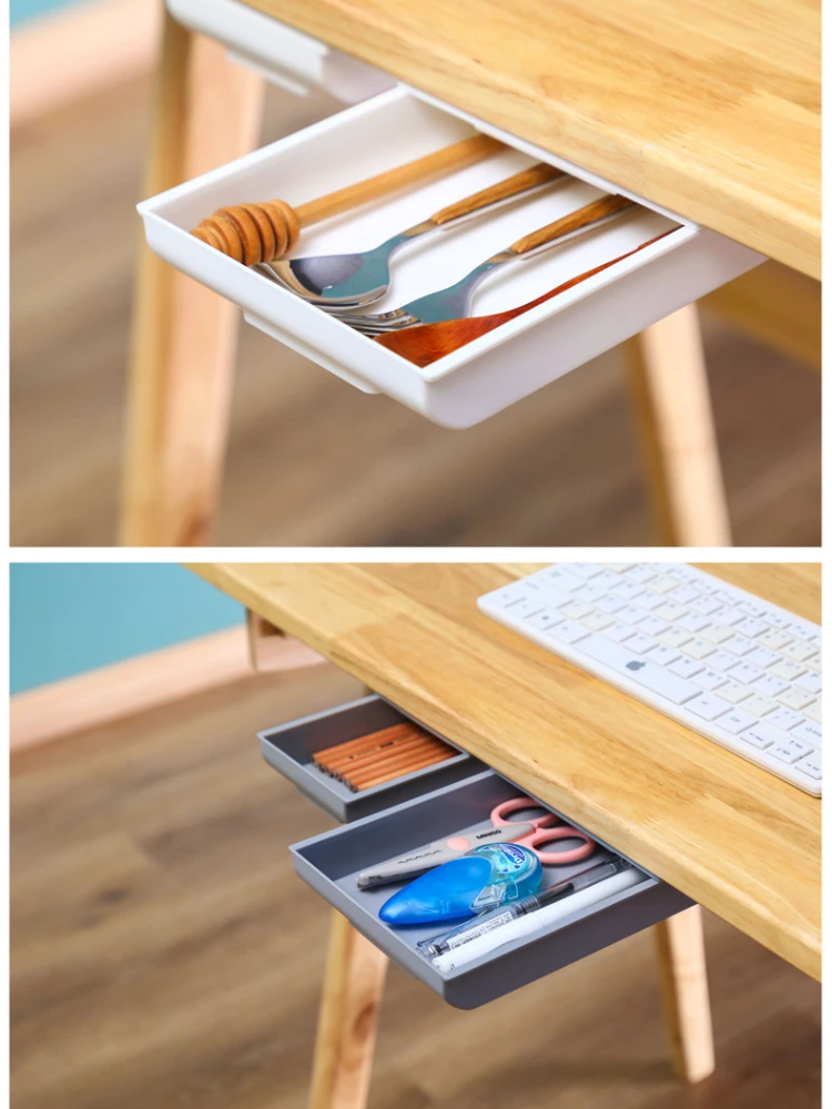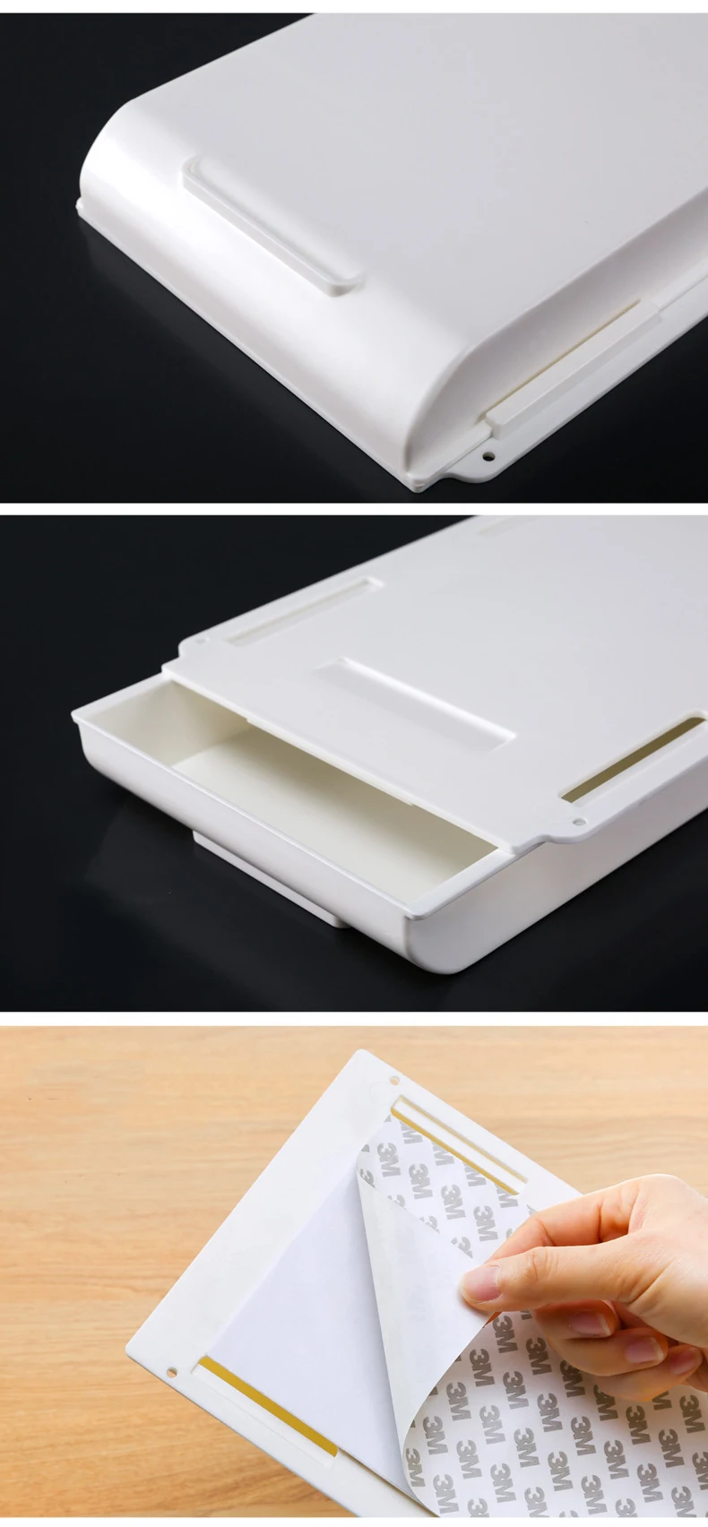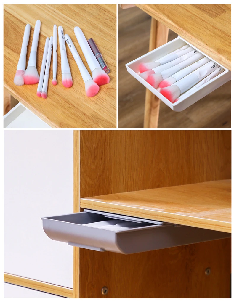 Boîte de rangement cachée auto-adhésive sous la table Organisateur de maquillage sous le bureau Tiroir de rangement Boîte d’organisation Rangement de papeterie