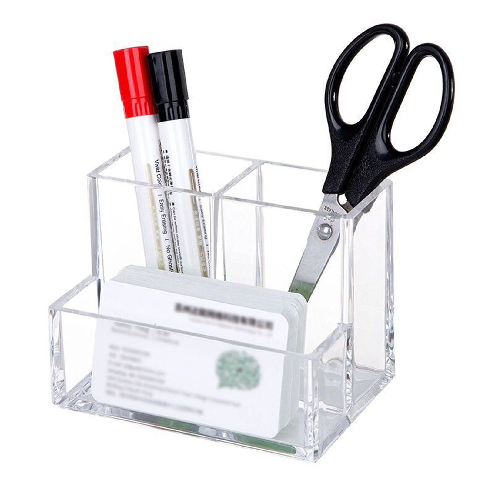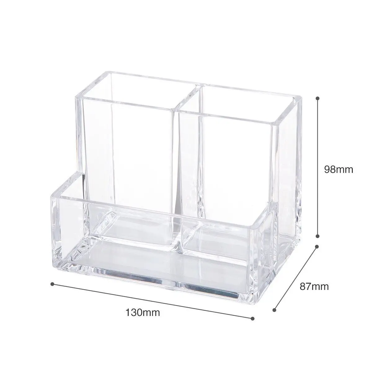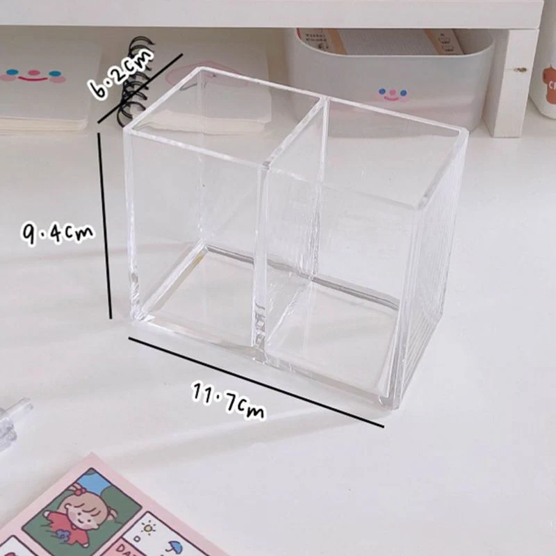 La boîte de rangement transparente pour pinceaux cosmétiques est fabriquée en acrylique de haute qualité. Elle présente une transparence élevée et une durabilité accrue. Ce support de signe transparent rendra votre bureau plus propre. Il dispose de 3 compartiments, dont 2 pour les stylos et 1 pour les notes, permettant ainsi de ranger facilement les petits objets tels que les crayons, les marqueurs, les cartes téléphoniques et les cartes de visite. Cette boîte de rangement en acrylique peut être utilisée non seulement pour stocker des crayons, mais aussi pour des brosses cosmétiques, des brosses à dents, des ciseaux, des peignes, etc. Elle convient à une utilisation dans le bureau, l’école, la salle de bain, la cuisine et la chambre à coucher. Le produit est disponible en différentes tailles pour s’adapter à tous les bureaux.