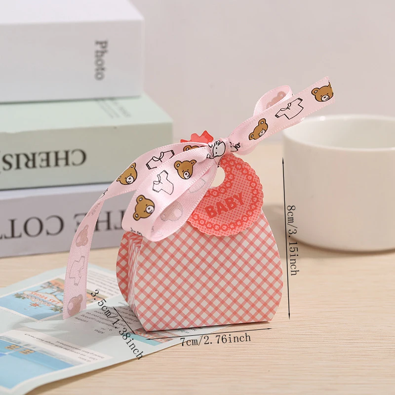 Les boîtes à bonbons en papier en forme d’ours avec étiquettes et rubans sont des cadeaux parfaits pour toutes occasions telles que les mariages, les baptêmes, les baby showers et les fêtes. Chaque lot contient 12 pièces de boîtes à bonbons délicates, idéales pour offrir en cadeau. Les boîtes sont en carton et mesurent 8*7*3.5cm. Elles sont disponibles en rose et en bleu. Les boîtes à bonbons sont faciles à monter et à personnaliser avec les étiquettes et les rubans fournis. Elles sont également réutilisables pour d’autres occasions. Ces boîtes à bonbons sont parfaites pour emballer des bonbons ou des biscuits.