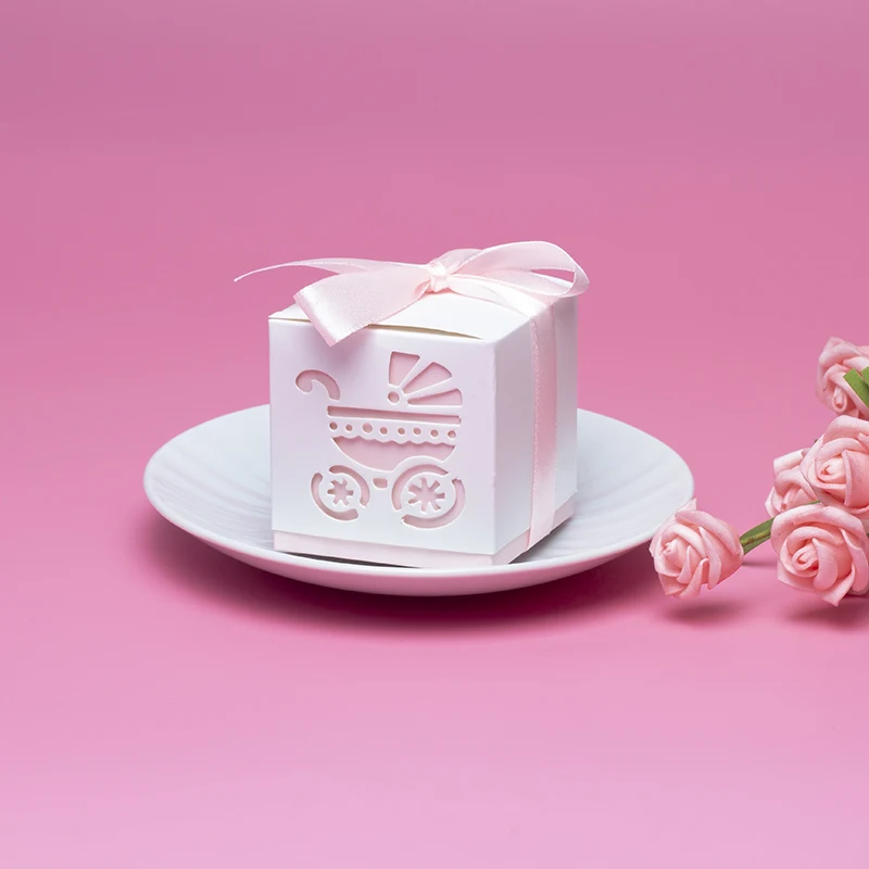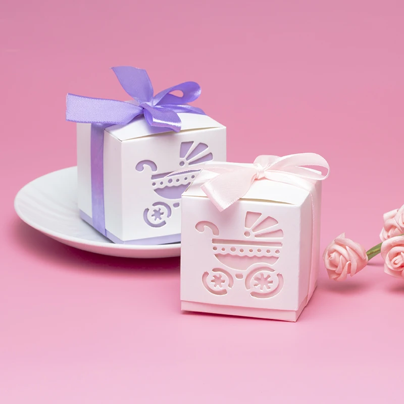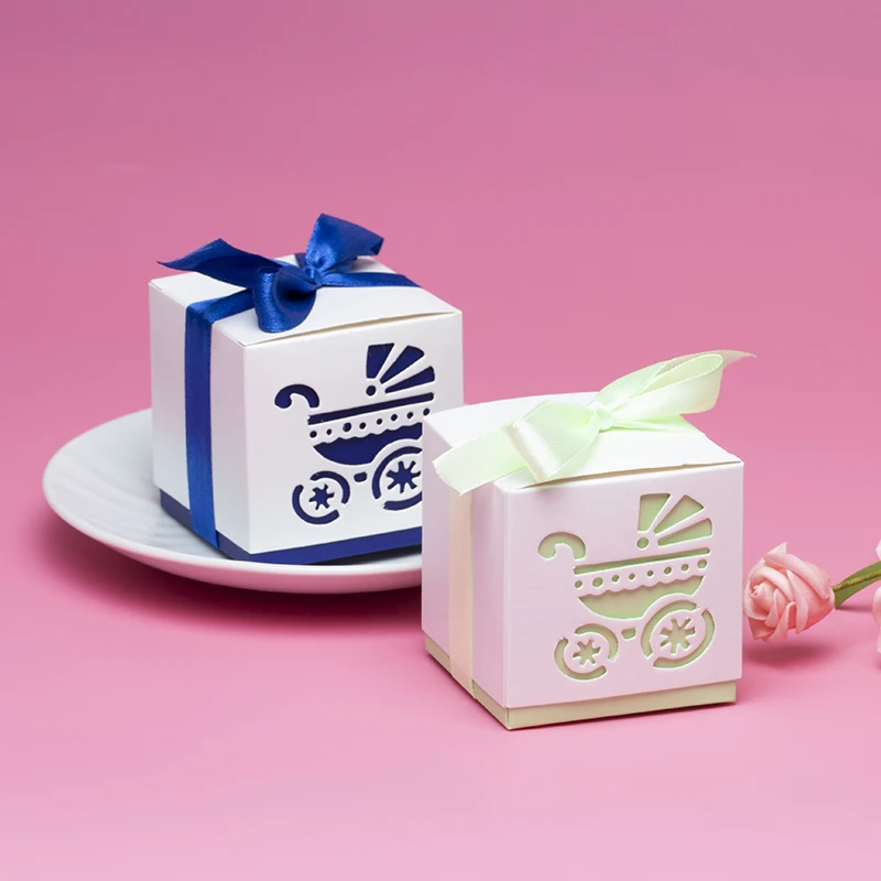 Les boîtes à bonbons mignonnes en papier bleu et rose pour landau sont un choix idéal pour décorer les fêtes d’anniversaire des enfants ou offrir en cadeau lors d’une réception pour bébé. Ces boîtes sont fabriquées en papier double perle de couleur bleue et rose, avec une taille de 6*6*6cm et un poids de 114g. Chaque sac contient 10 pièces de boîtes à bonbons.