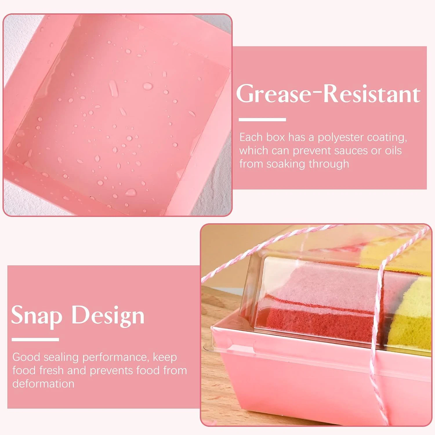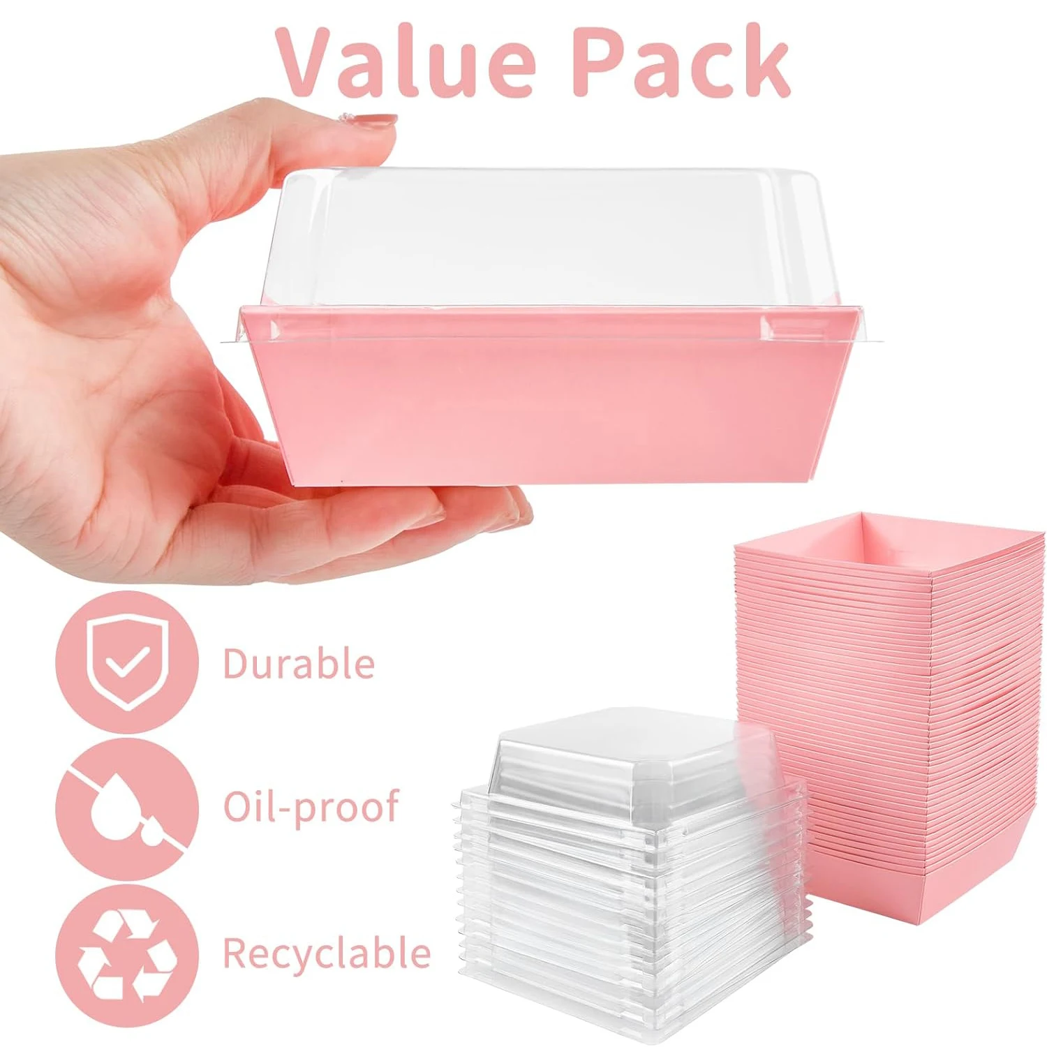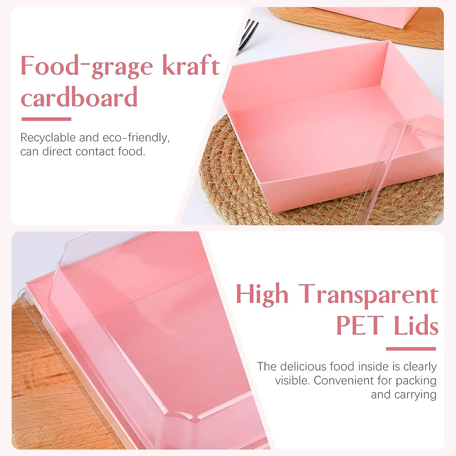 - Matériau de haute qualité: La boîte à charcuterie est faite de carton rose robuste et le couvercle est en plastique PET, recyclable et durable, peut entrer en contact direct avec les aliments.