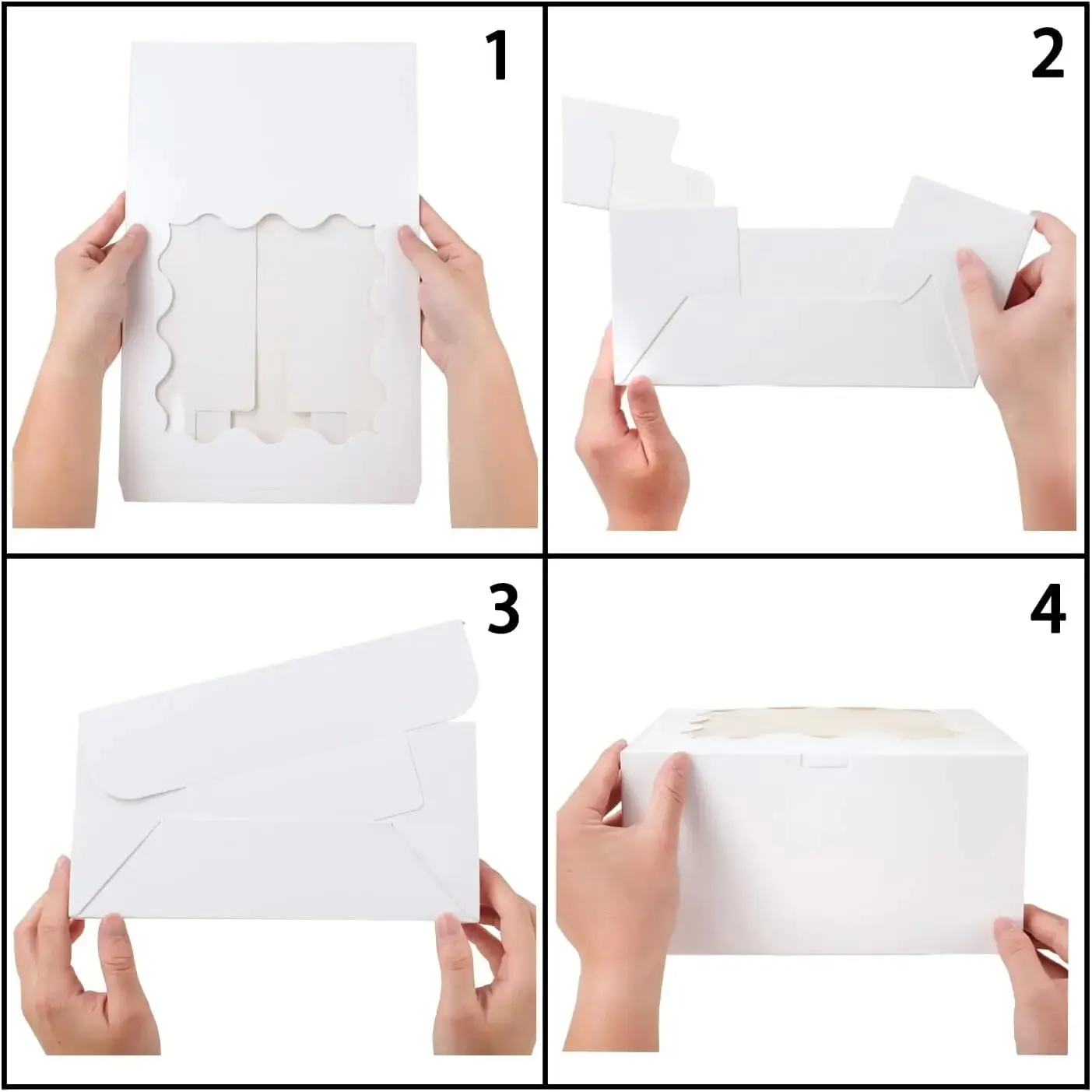 Avant de plier, les boîtes à gâteaux en carton blanc sont dans un état d’emballage plat et ne prennent pas trop de place, ce qui est pratique pour vous de stocker et d’organiser.