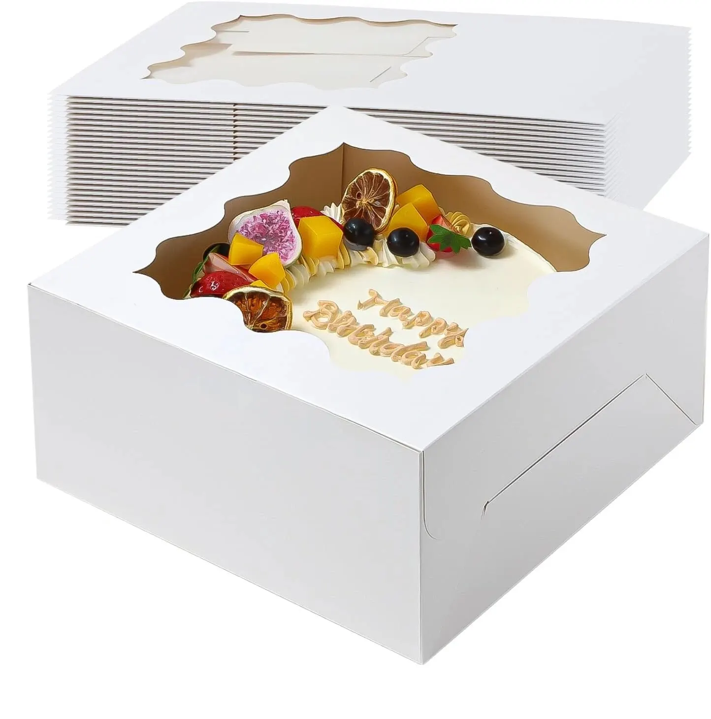 10 paquets: La boîte à gâteaux est carrée et mesure 10x10x5 pouces. Il convient au placement de gâteaux dans
