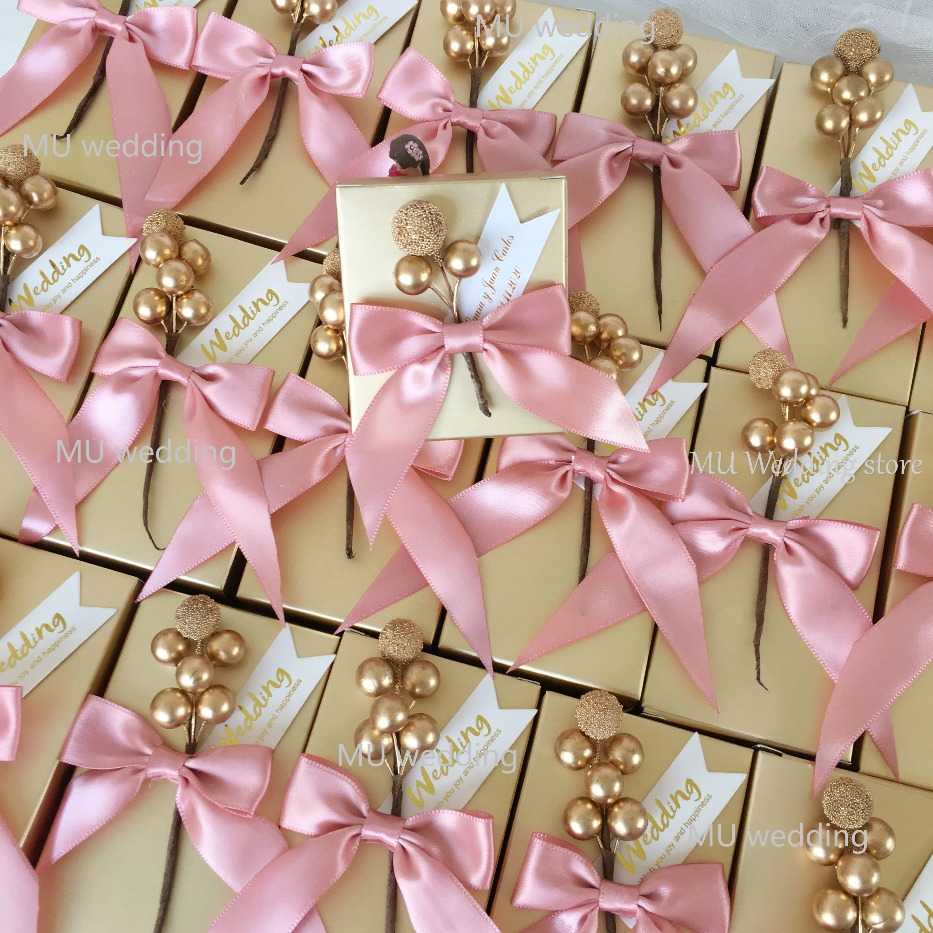 • 50pcs faveur de mariage rose doré unique