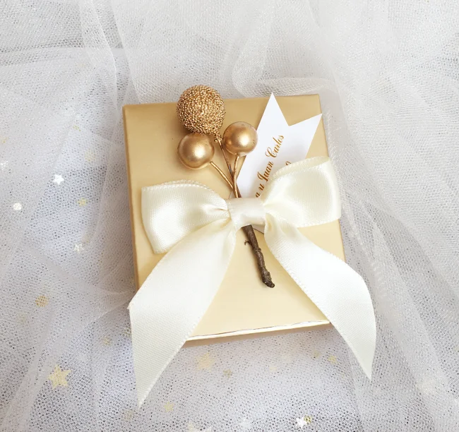 Le Mini papier doré avec ruban texte personnalisé est un excellent choix pour les faveurs de mariage. Les boîtes en papier rose doré sont élégantes et uniques, ajoutant une touche spéciale à votre événement. Les différentes tailles disponibles permettent de contenir différents nombres de chocolats Ferrero, offrant ainsi une flexibilité dans le choix des cadeaux à mettre à l’intérieur. De plus, la possibilité de personnaliser le texte sur l’étiquette ajoute une touche personnelle à chaque boîte.