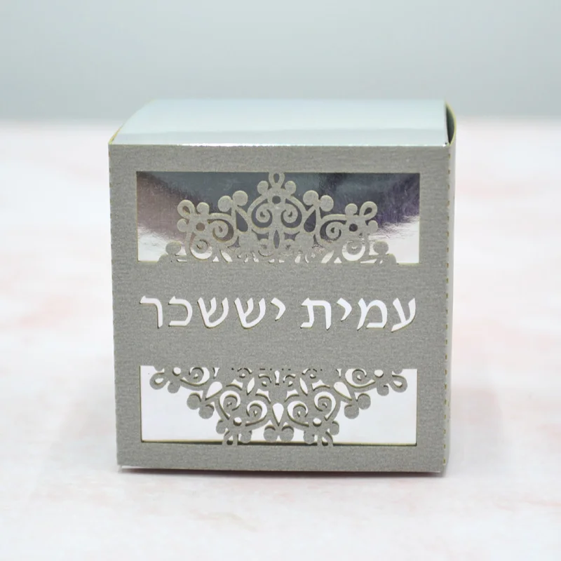 Les boîtes à faveurs hébraïques personnalisées téfmonaires découpées au laser sont de magnifiques objets de décoration pour les Bar Mitzvah et les fêtes juives. Leur personnalisation gratuite permet d’ajouter une touche unique à chaque boîte. Cependant, nous recommandons de passer commande avec un délai de livraison suffisamment long, car les commandes personnalisées peuvent prendre jusqu’à 4 jours de processus.