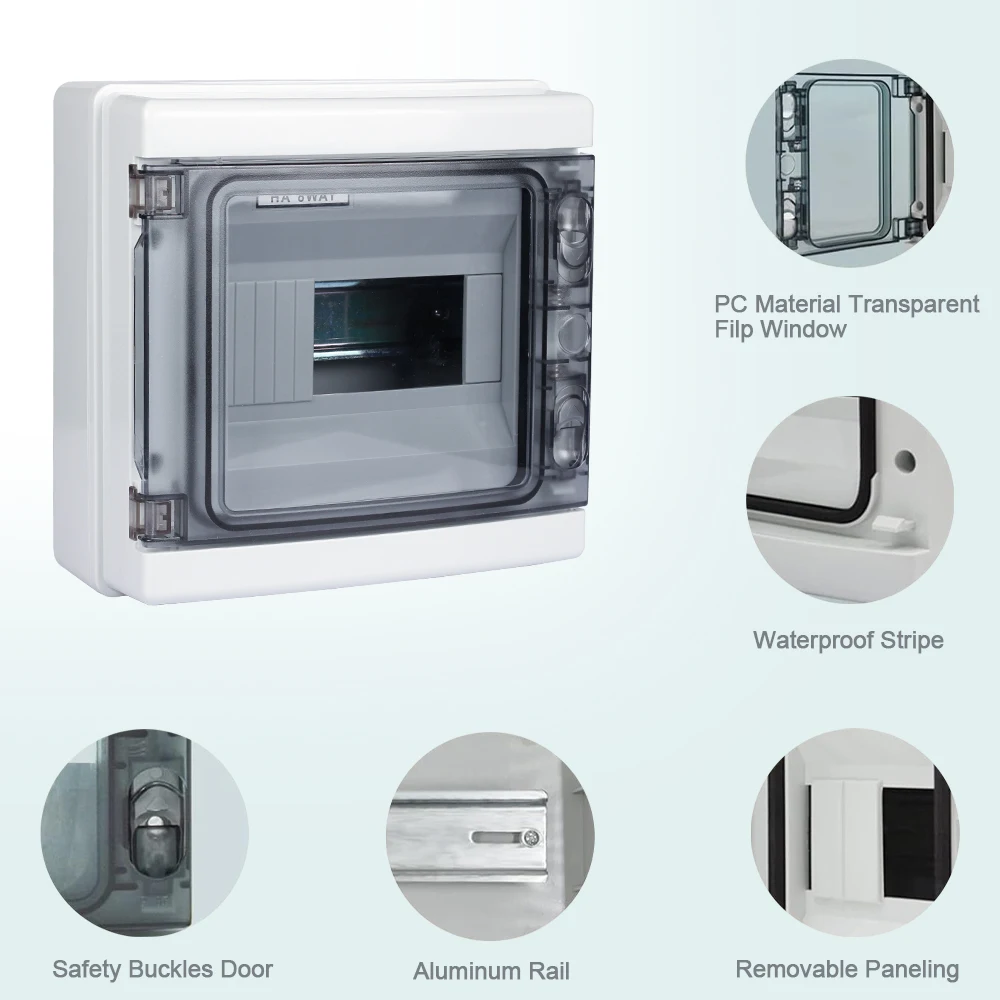Fabriqué en matière plastique de haute qualité, ce boîtier de distribution est durable et robuste. Le couvercle est transparent afin que vous puissiez facilement vérifier l’état du disjoncteur sans l’ouvrir. Il est facile à installer et pratique à utiliser, il suffit de le monter sur votre mur. Idéal pour monter à l’intérieur, largement utilisé pour la maison, l’hôtel, le magasin et de nombreux autres endroits.