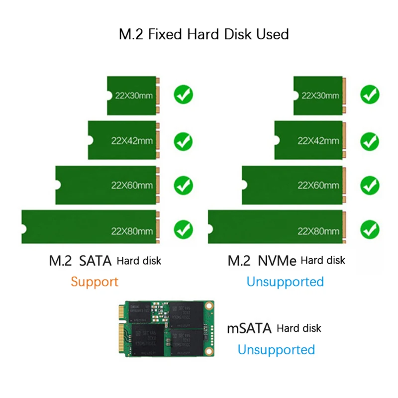 | – Prend en charge M.2 PCIe NVME (clé M) 2242 2260 2280mm SSD/NGFF SSD (clé B) | – 1 M.2 boîte de disque dur à semi-conducteurs |