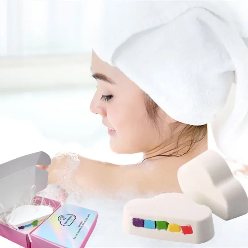 | Forme des nuages et couleurs colorées | Formulé avec des huiles essentielles | Fait à la main avec des ingrédients biologiques | Adoucit et hydrate la peau | Idéal pour le spa, le bain, les sources chaudes |