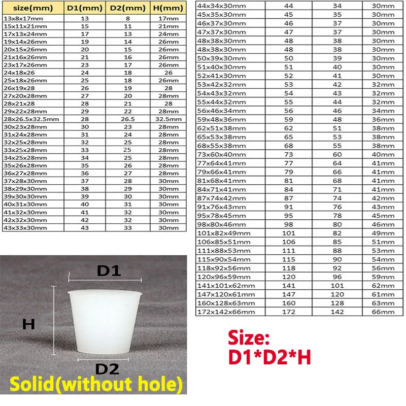 - Avec trou : Diamètre inférieur x diamètre supérieur x hauteur (avec diamètre du trou 8mm)