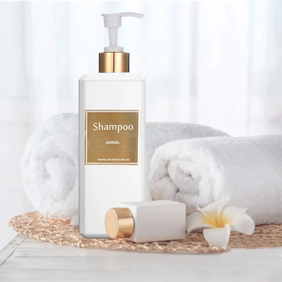 500ml/16.9oz distributeur de shampooing presse pompe bouteille avec étiquettes étanches en or salle de bain shampooing revitalisant bouteilles de lavage du corps