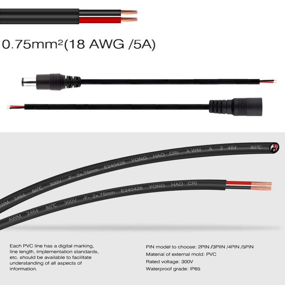 Ce cáble de connecteur d’alimentation est compatible avec les bandes LED de couleur unique telles que les bandes LED 5050, 3528 et 5630.