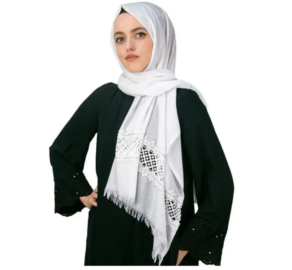 Le châle est fabriqué à partir de dentelle aiguille blanc.
