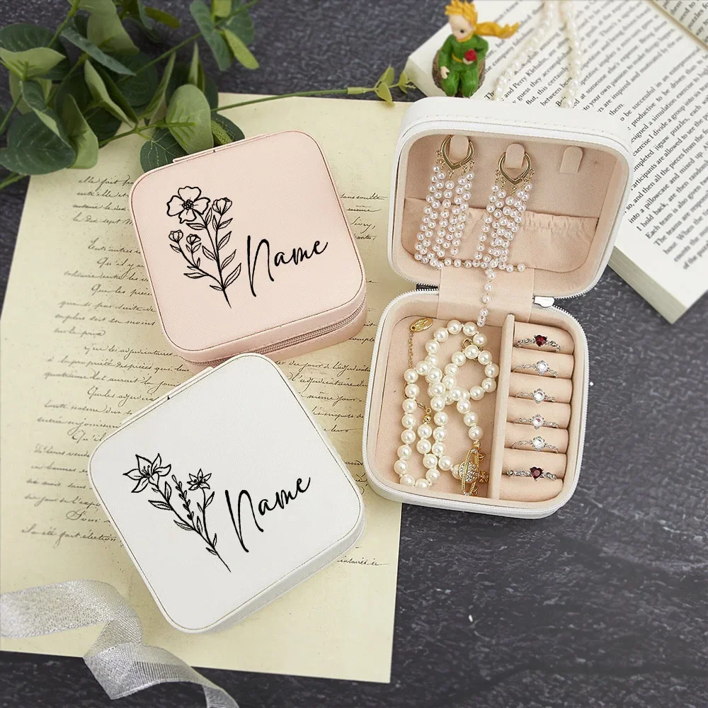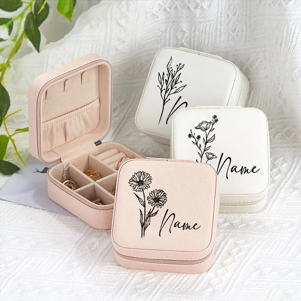 | Boîte à bijoux personnalisée avec fleur de naissance | Les bijoux ne sont pas inclus |