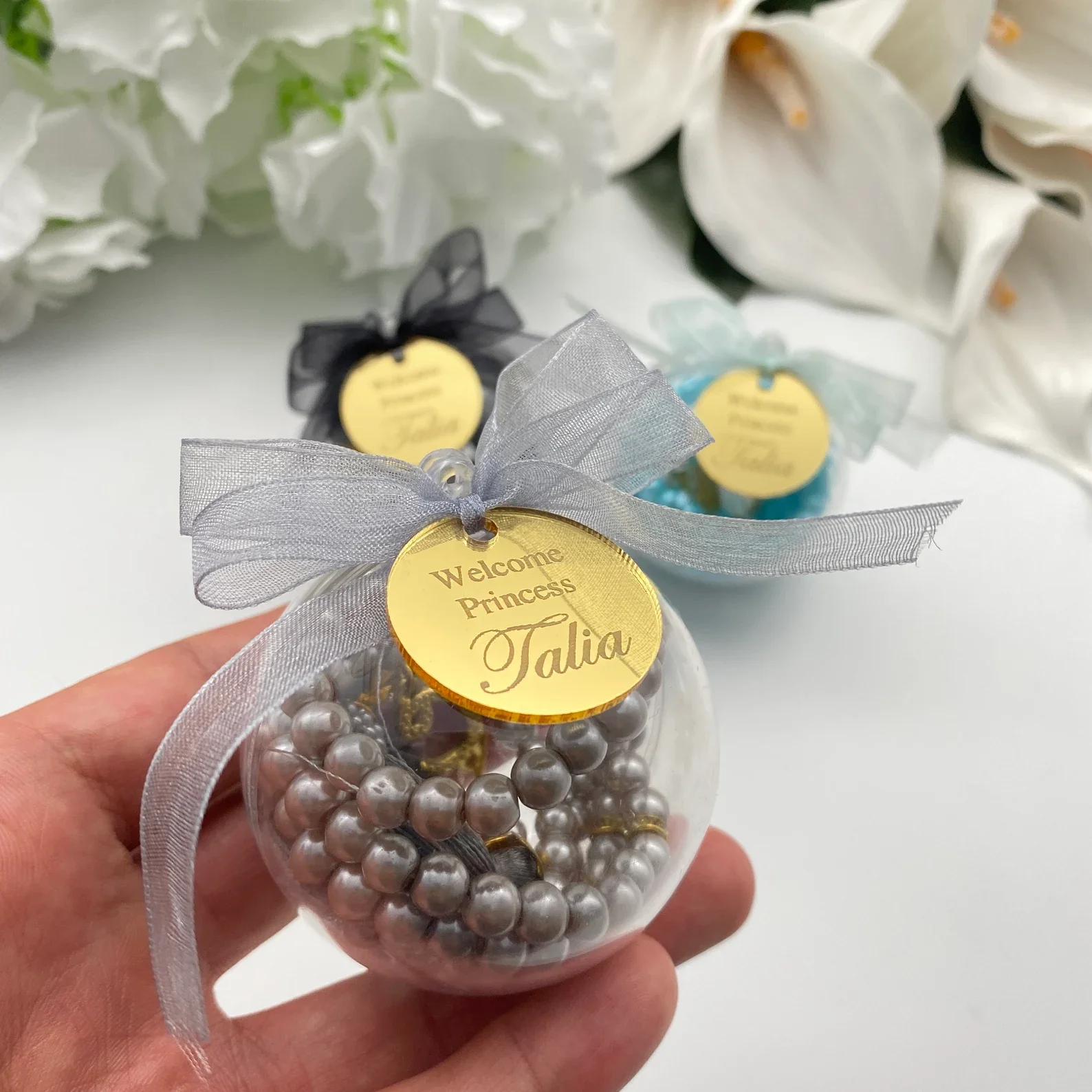 Oui, ces faveurs sont personnalisées et vous pouvez spécifier les noms à écrire sur chaque miroir.