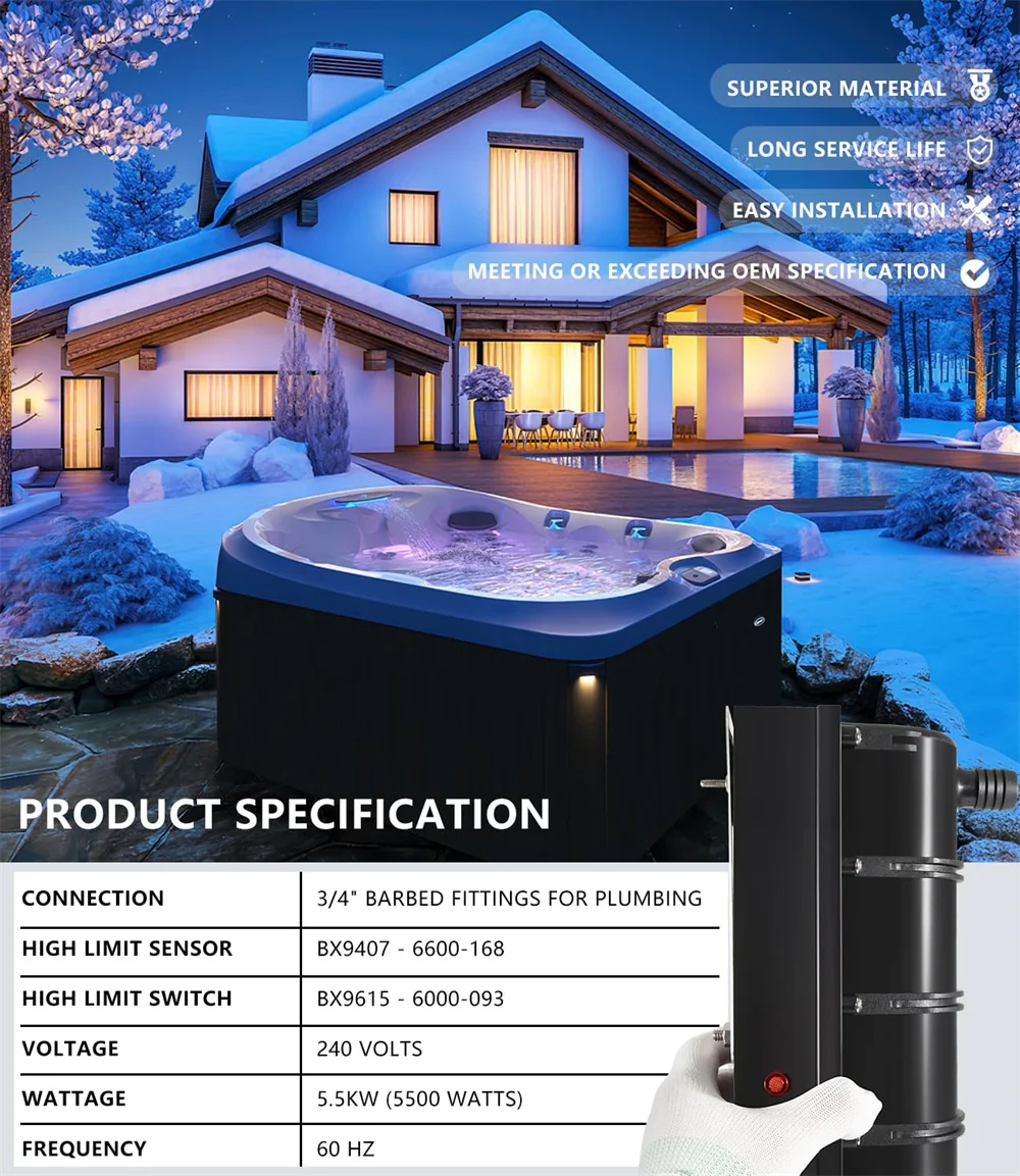 Le capteur de chauffage intelligent à faible débit, remplacement pour bain à remous Sundance/Jacuzzi Spa, 6500-310/6500-301, 5,5 kW, 240V, 60Hz, capteur de limite élevée, 6600-168 est un produit puissant et fiable.