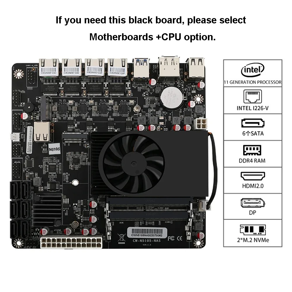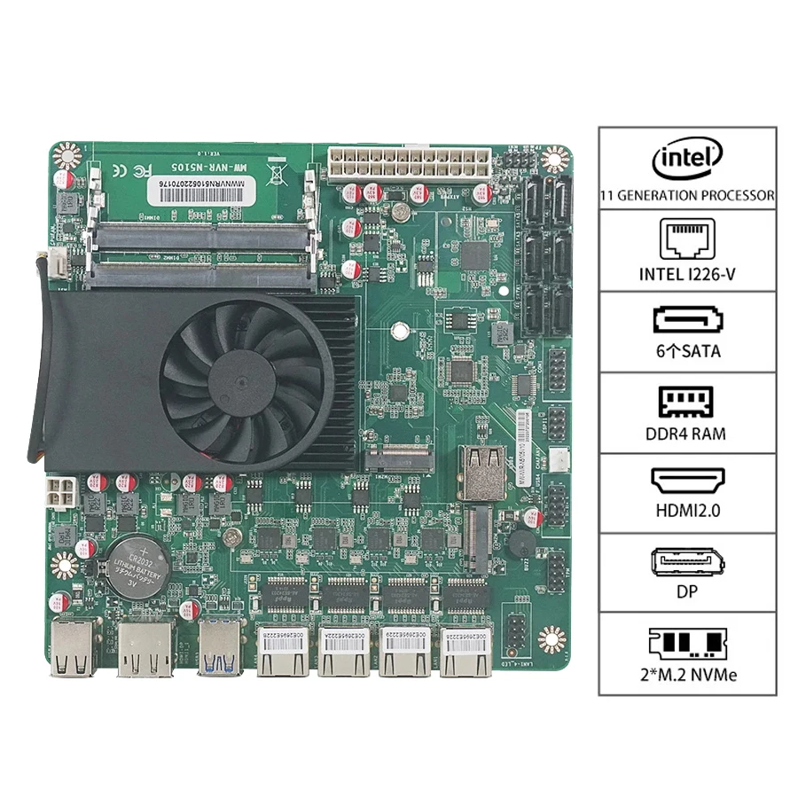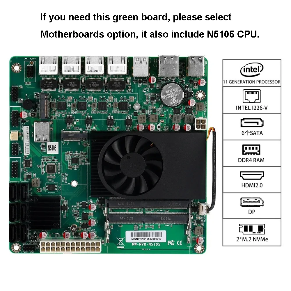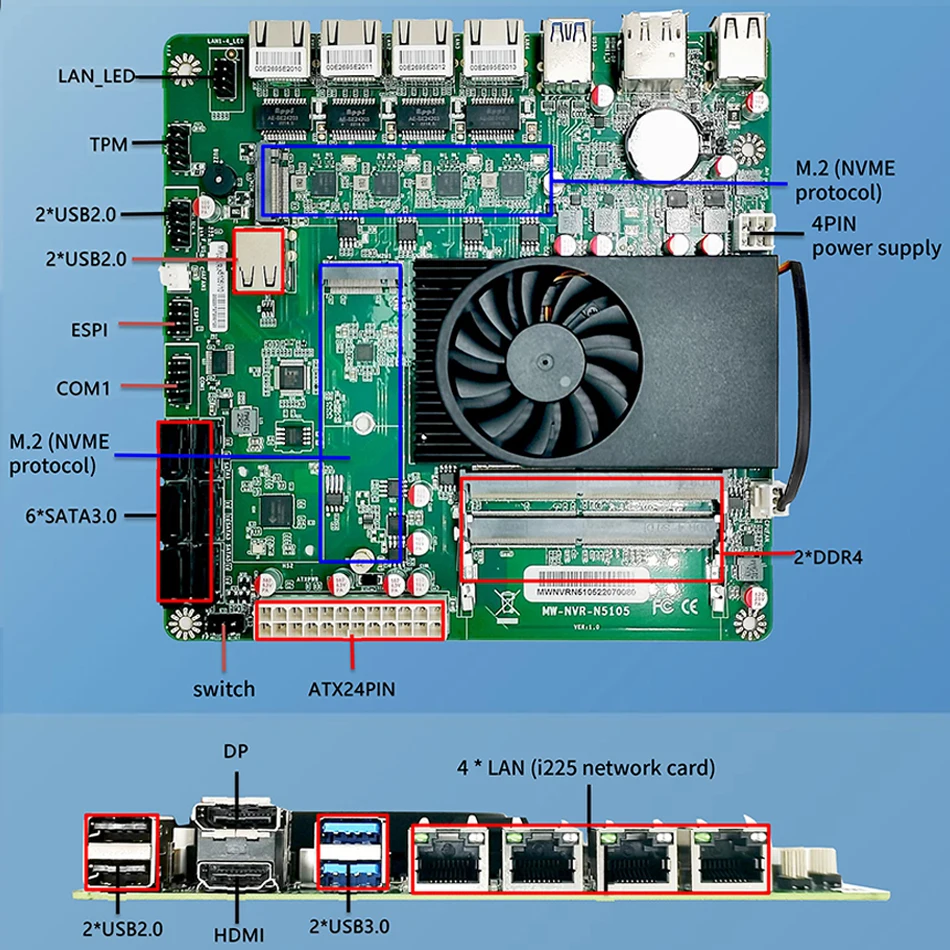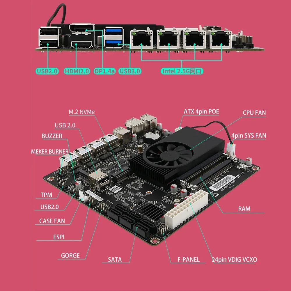 - Port réseau 4*2.5G, prise en charge du réveil sur LAN/PXE (carte verte: Intel i225, carte noire: Intel i266 V)