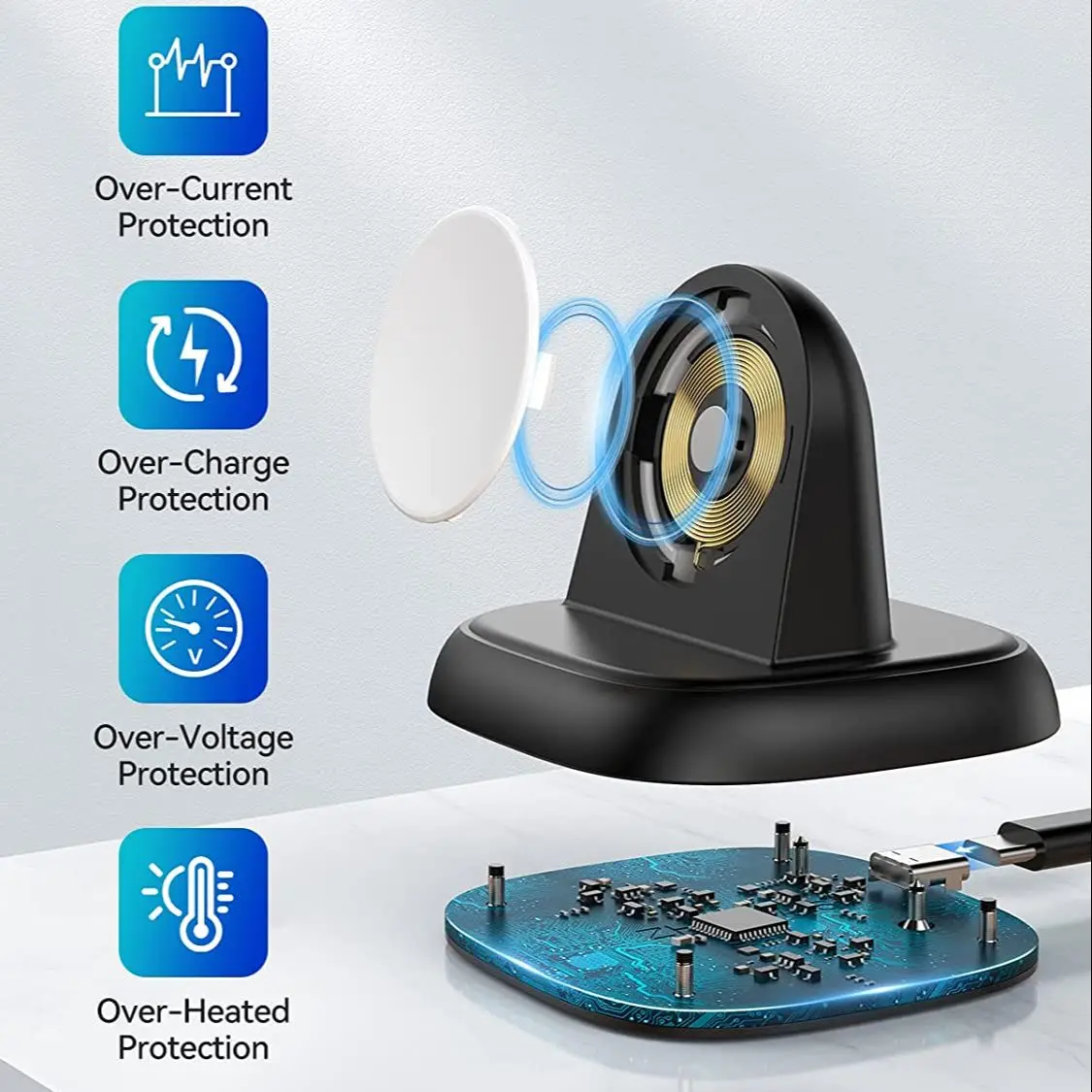 Auto Snap to Center Design. L’adsorption magnétique puissante permettra à votre montre de s’aligner parfaitement sur le centre du chargeur. Pas besoin de régler la position de charge par vous-même.