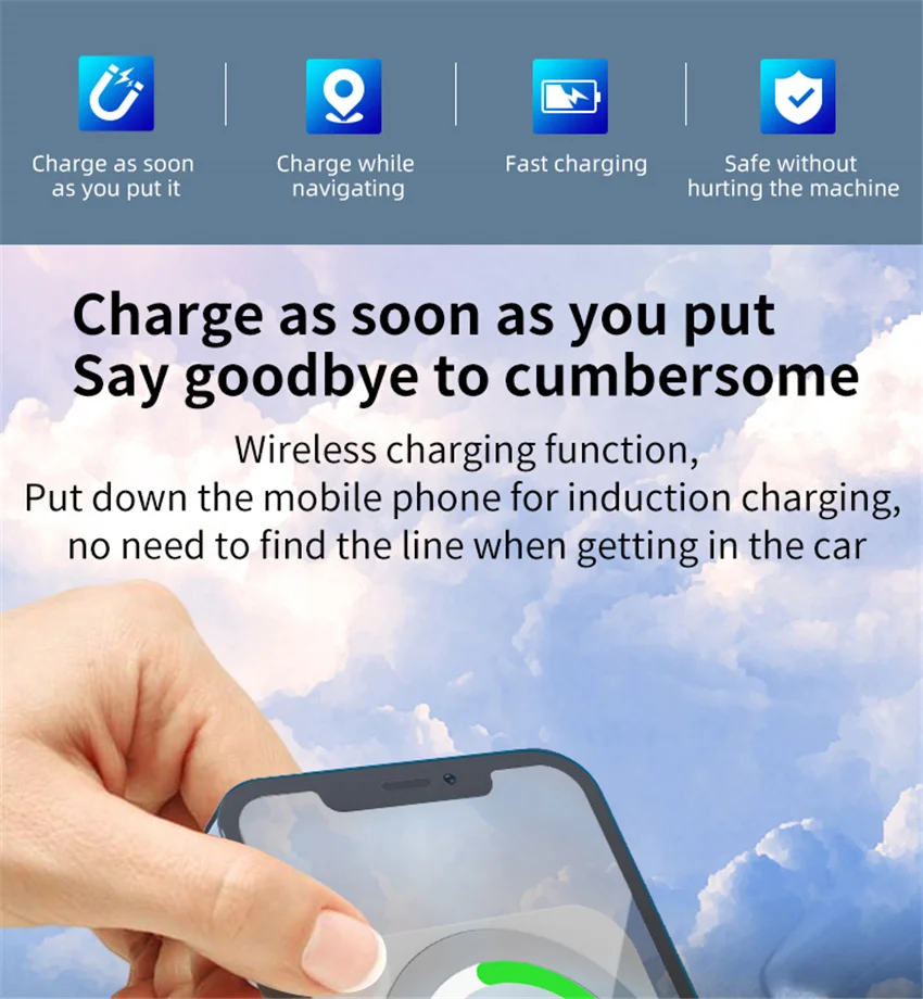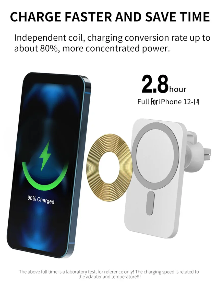 | Magnétique fort | Le puissant magnétique fixe le téléphone ensemble sans glisser, ce qui permet à votre téléphone d’être complètement concentré sur la carte de charge pour accélérer la charge. |