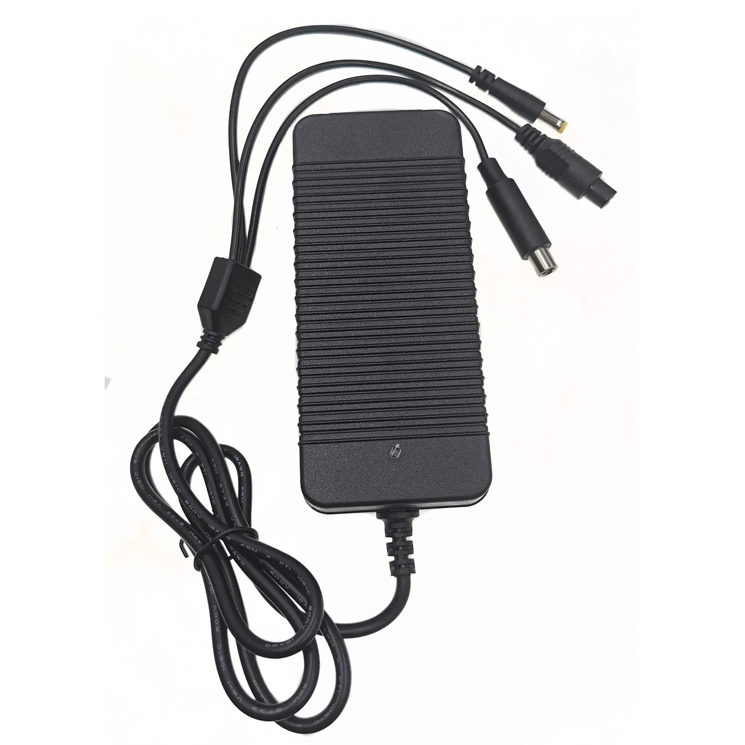 Le chargeur est équipé d’un connecteur 3 en 1 DC5521mm * RCA8MM * connecteur M12 à 3 broches, ce qui facilite le branchement sur le scooter électrique.