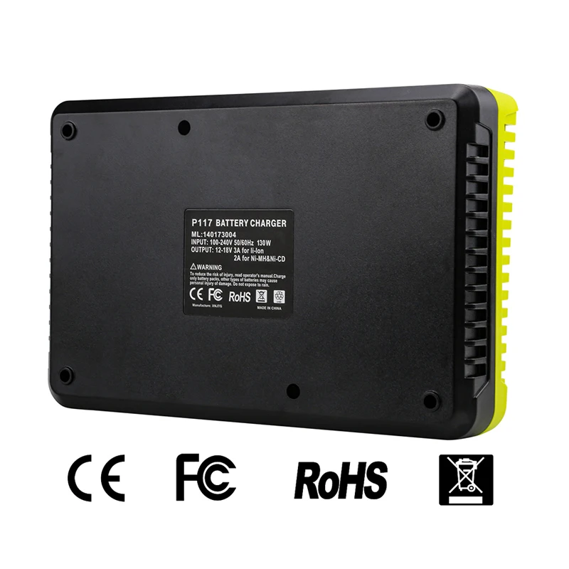 Le chargeur P117 pour batterie Ryobi 12V 14.4V 18V Eddie ion Ni-CD Ni-Mh P100 P102 P103 P105 Pknit P108 1400670 P118 Lithium ONE + Series est un chargeur de haute qualité. Il assure une charge rapide, sûre, stable et ne chauffe pas.