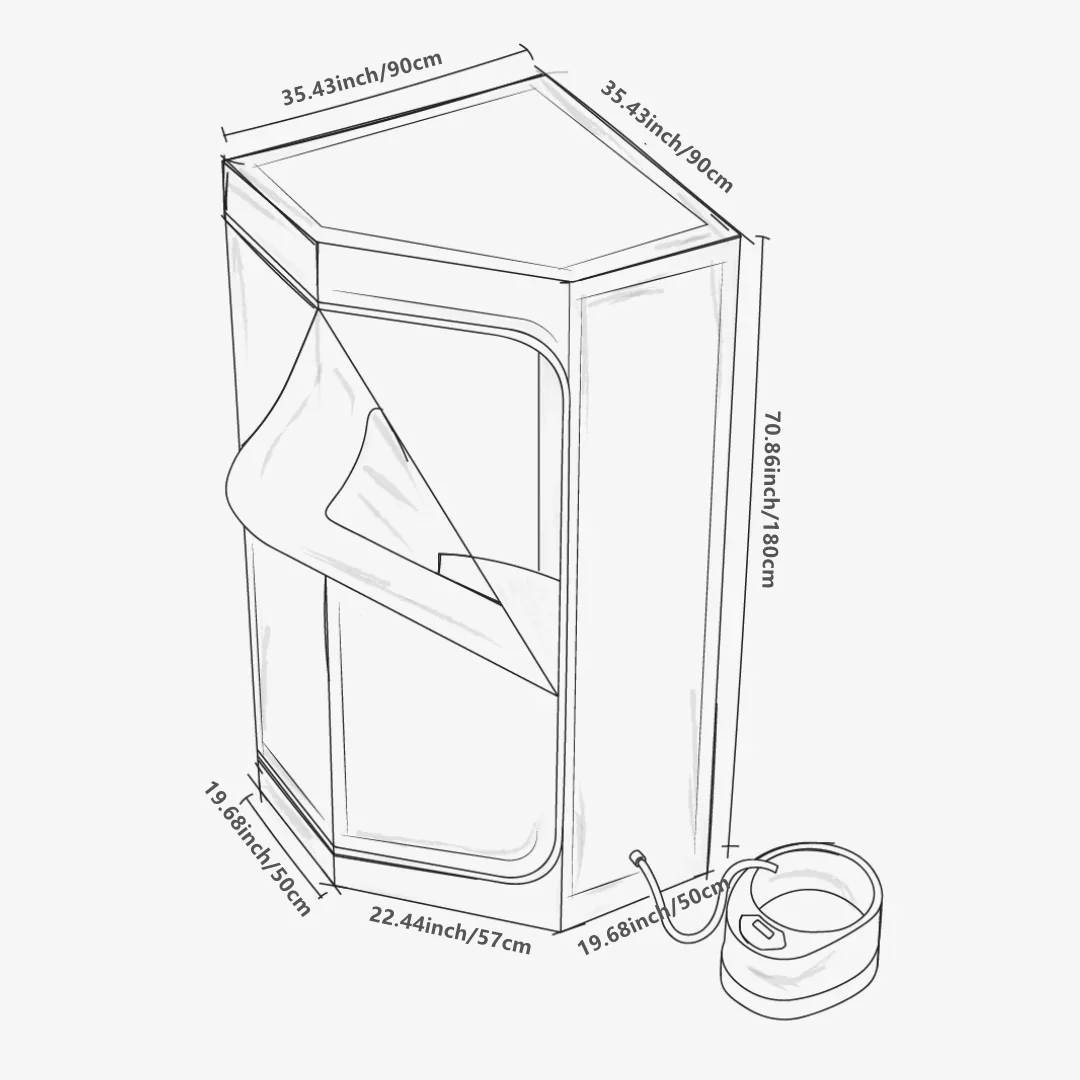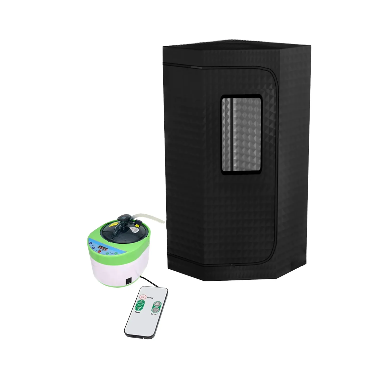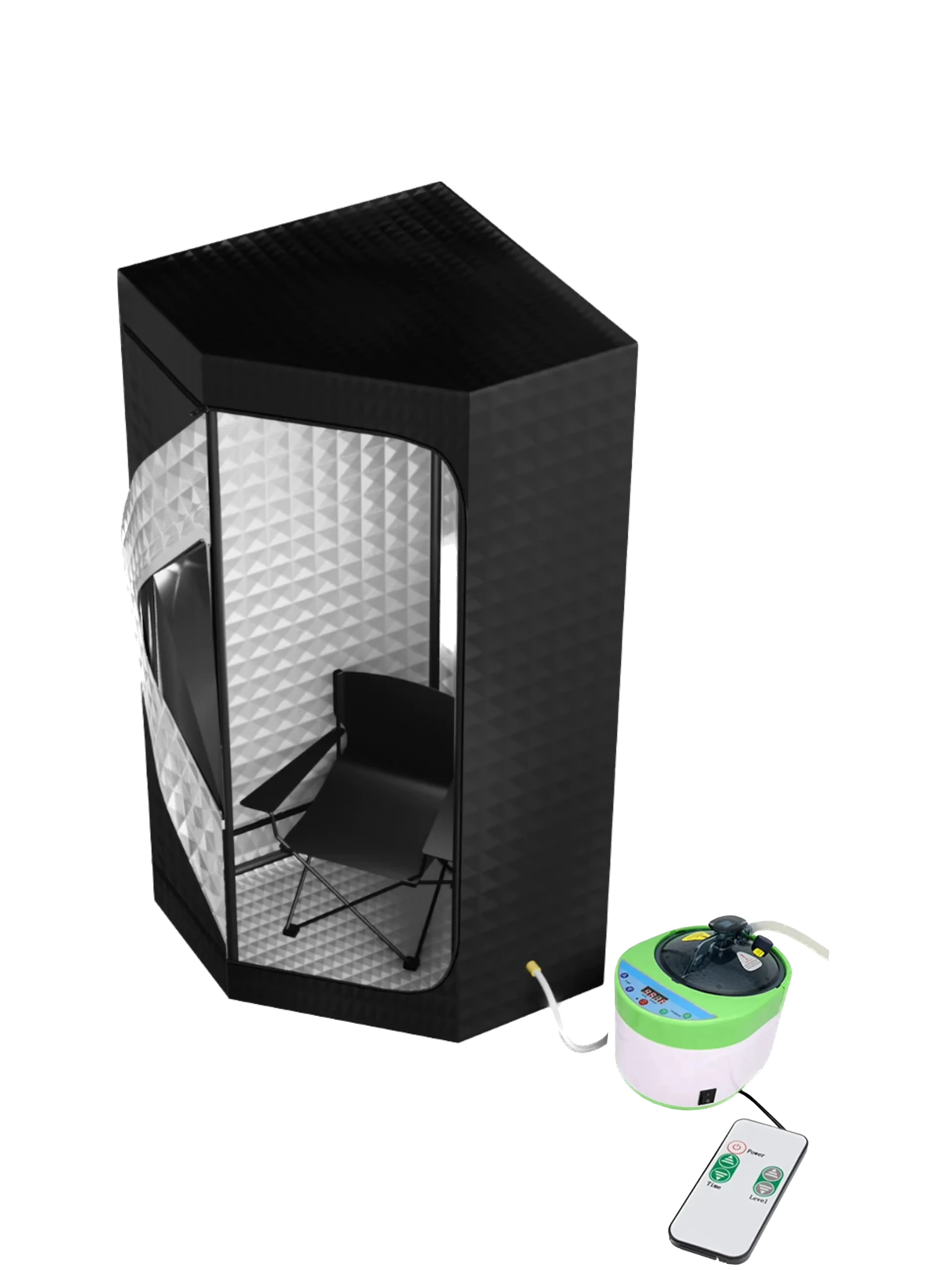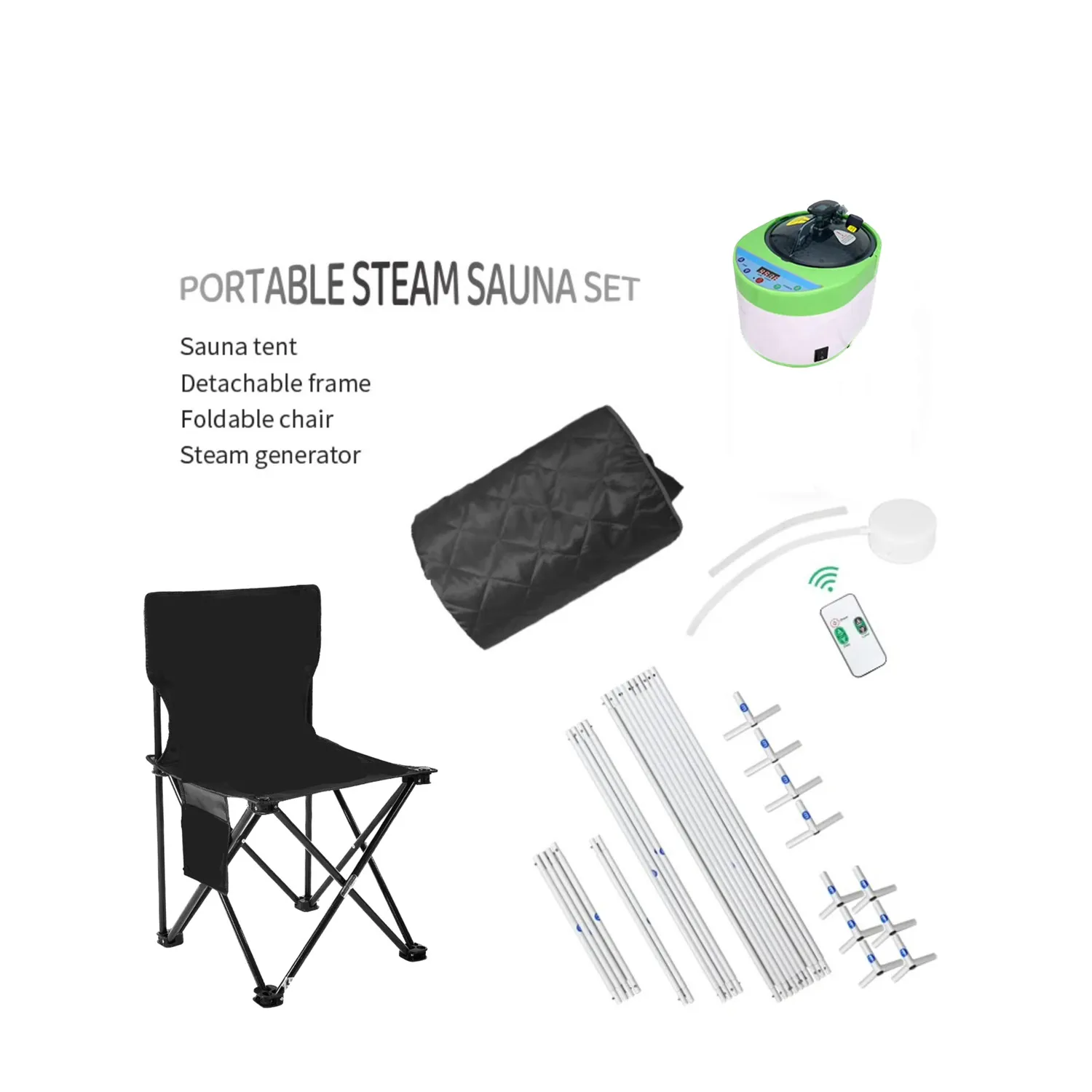 • Le paquet inclut: tente de sauna, générateur de vapeur, tuyau, boîte d’herbe, télécommande, manuel anglais, chaise pliante