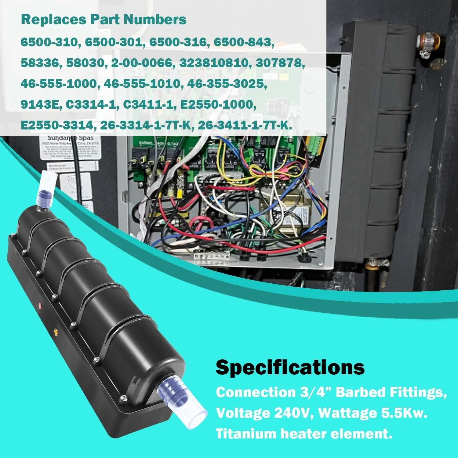 Le chauffage intelligent à faible débit de remplacement est compatible avec différents numéros de pièce, ce qui en fait une solution polyvalente pour les spas Jacuzzi Sundance et Jacuzzi 6500-310/6500-301.