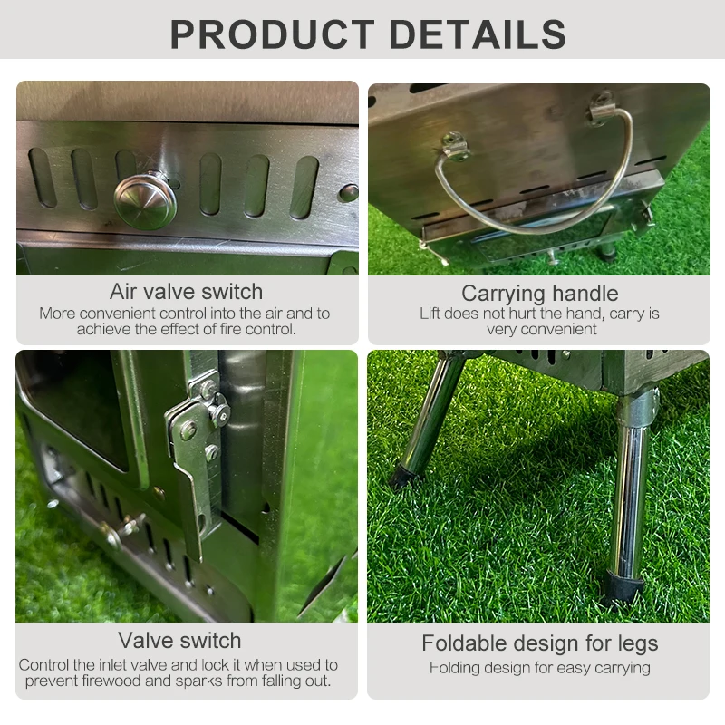 - Le chauffe-charbon de bois portable sans fumée est un accessoire idéal pour le camping et le chauffage