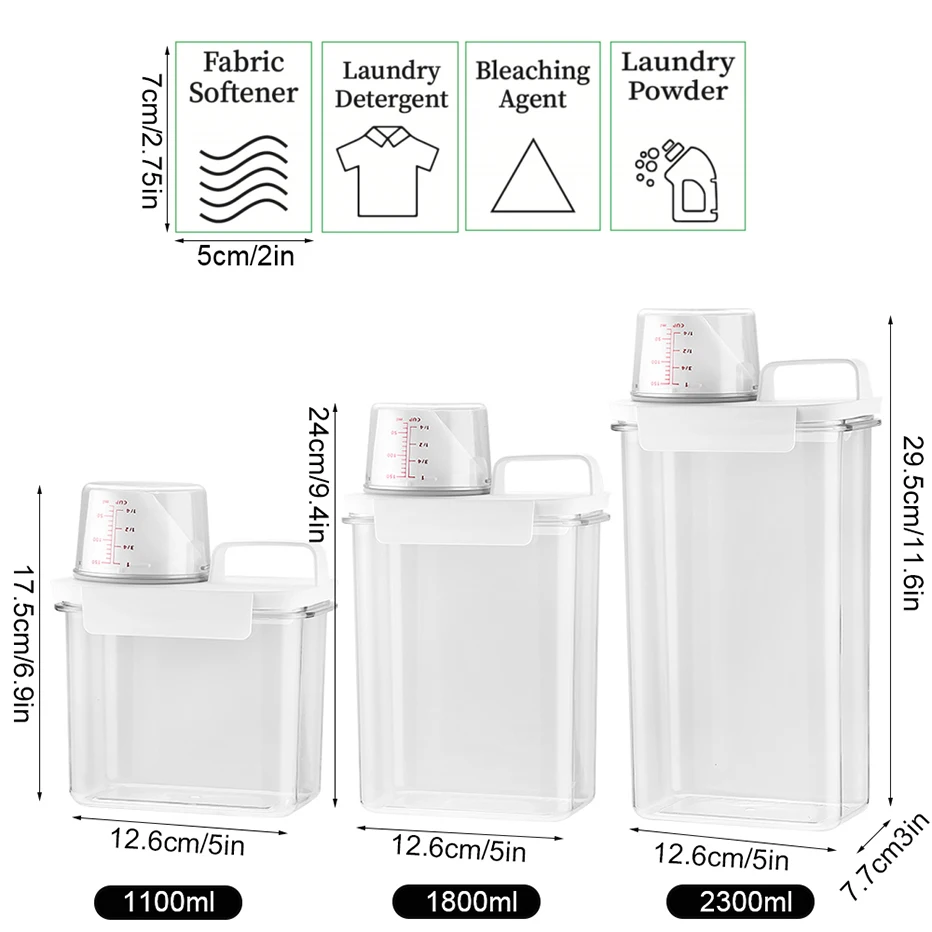 L’écrou ne peut pas utiliser dans la buanderie pour stocker le détergent/adoucissant, peut également être utilisé dans la cuisine pour stocker des grains/rices et ainsi de suite.